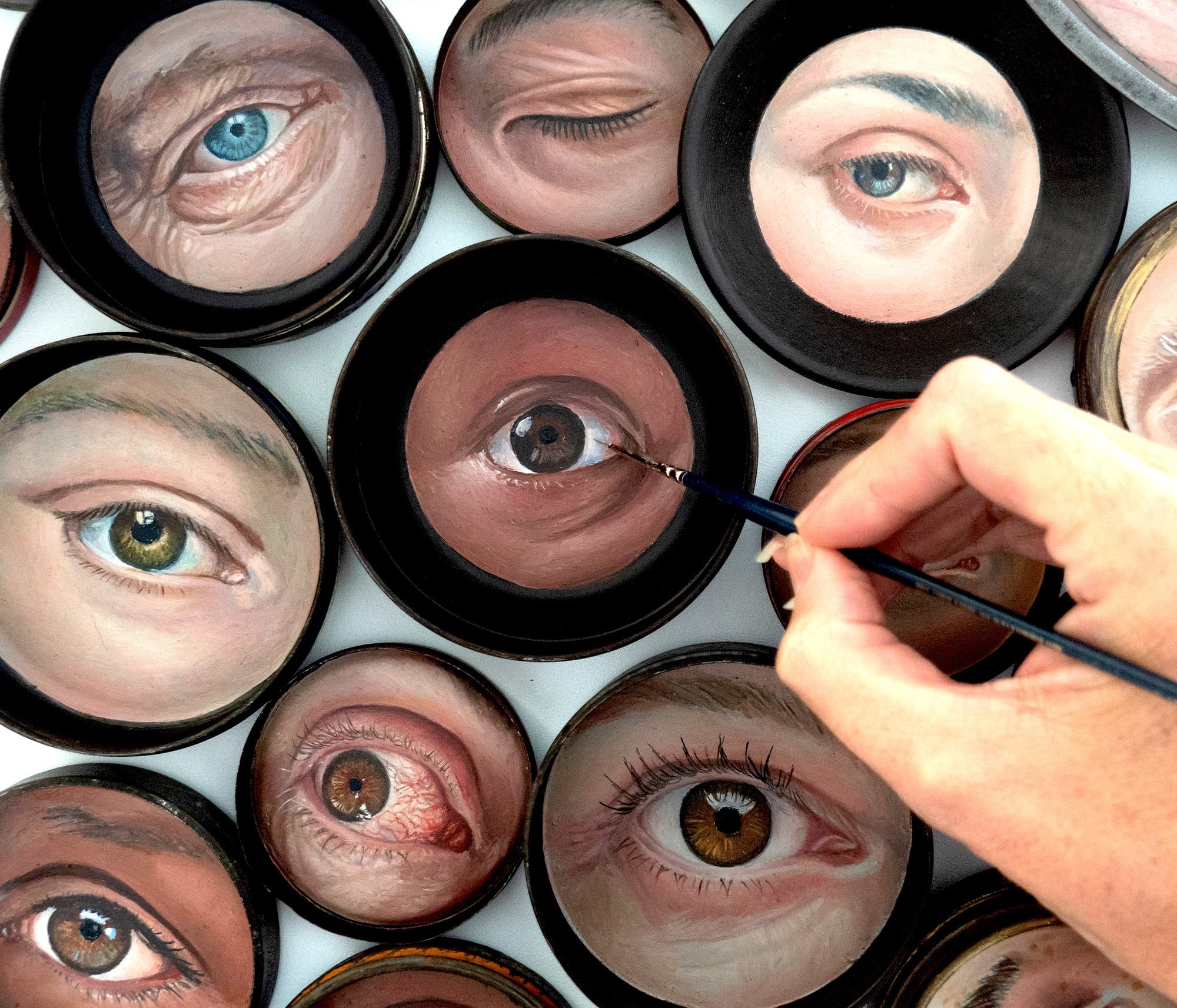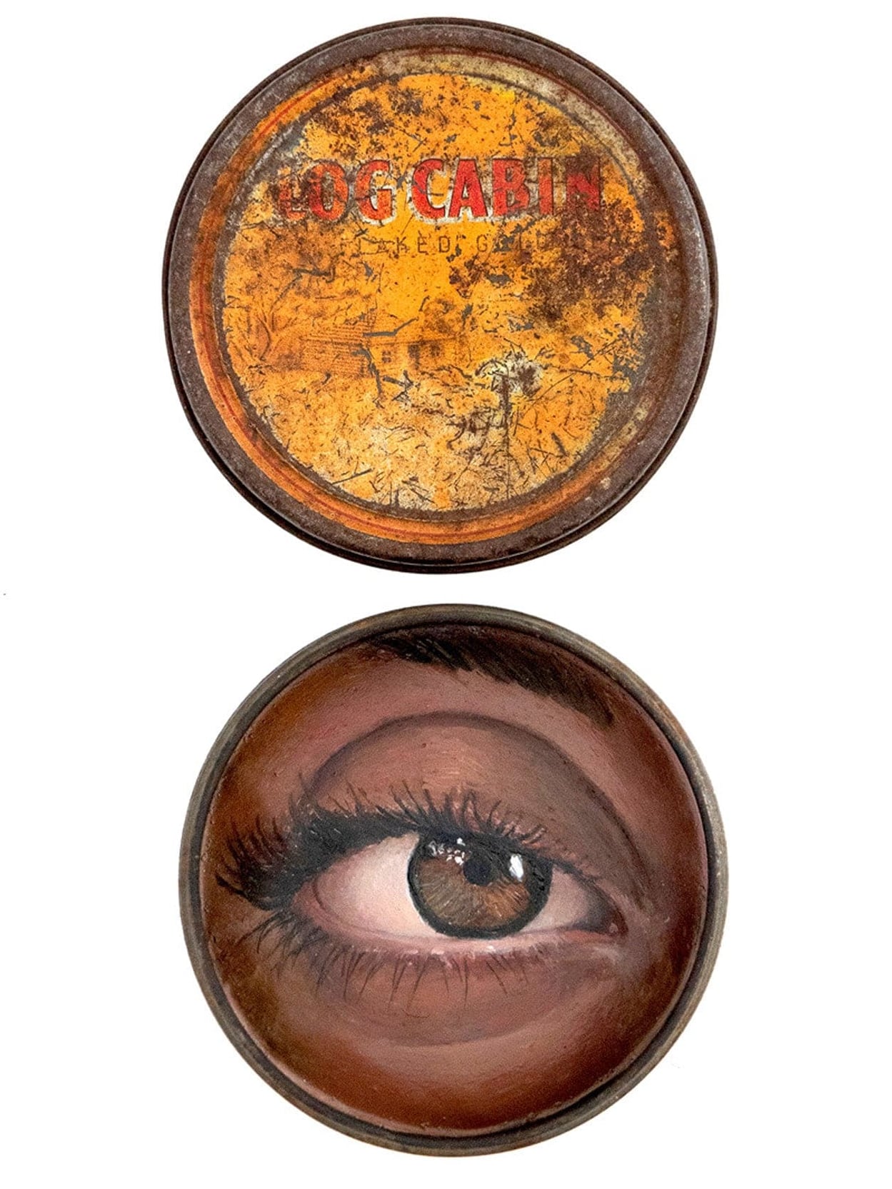 Expressive Eyes Painted by Robyn Rich Peek Out from Vintage Tins