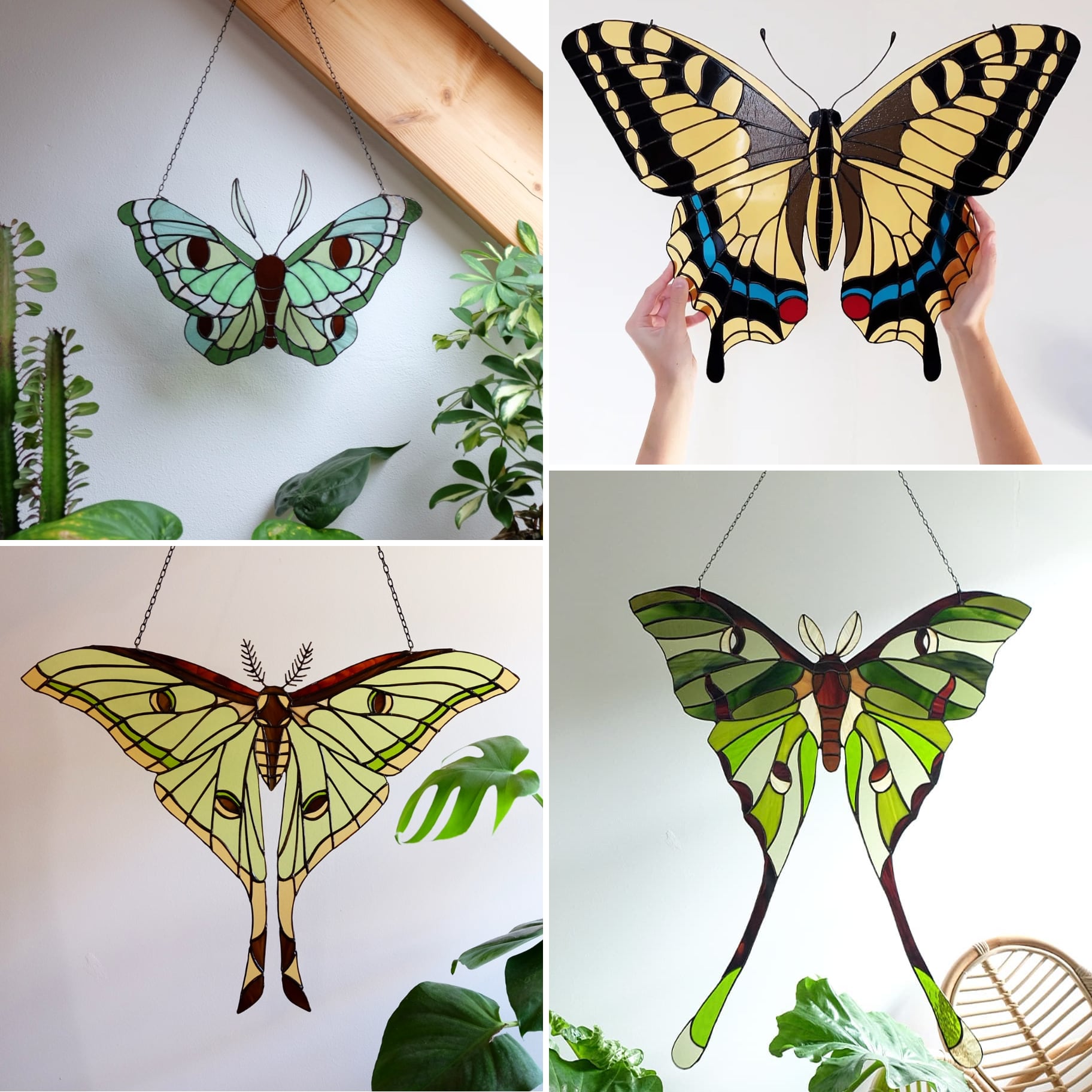 Delicate Stained Glass Butterflies and Moths Flit and Flutter with Illuminated Colors