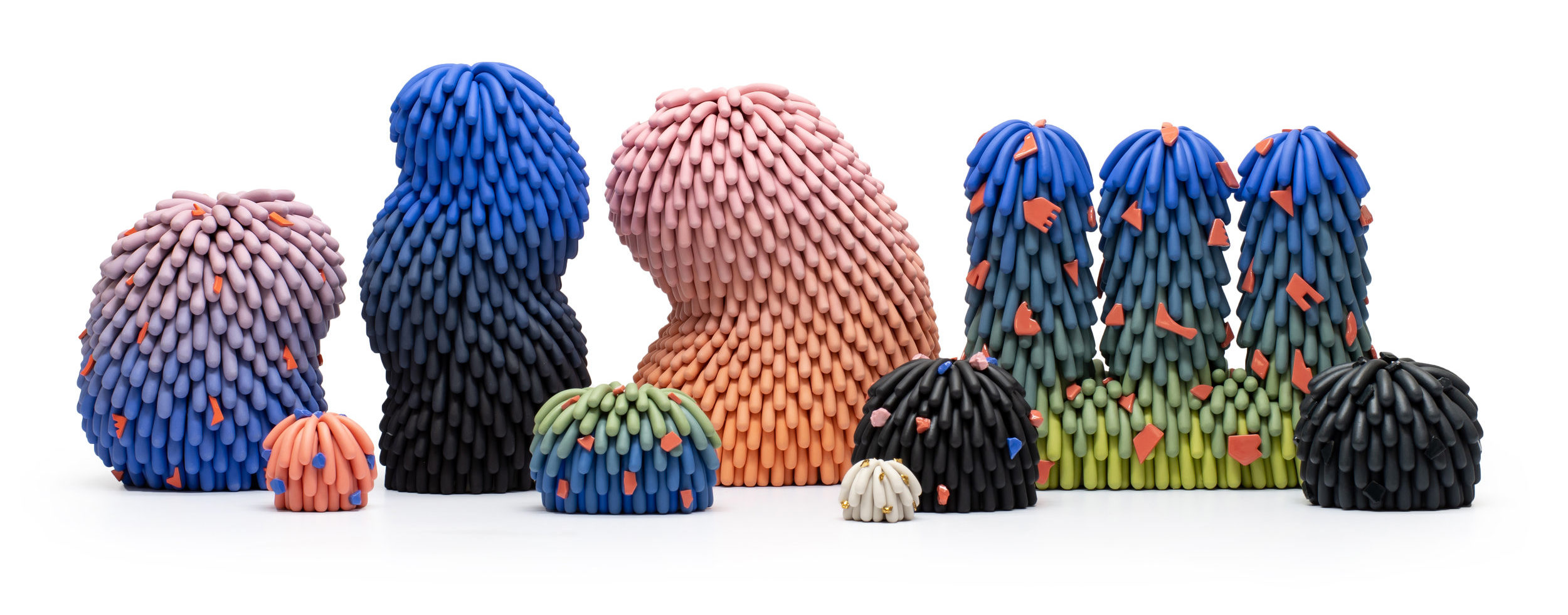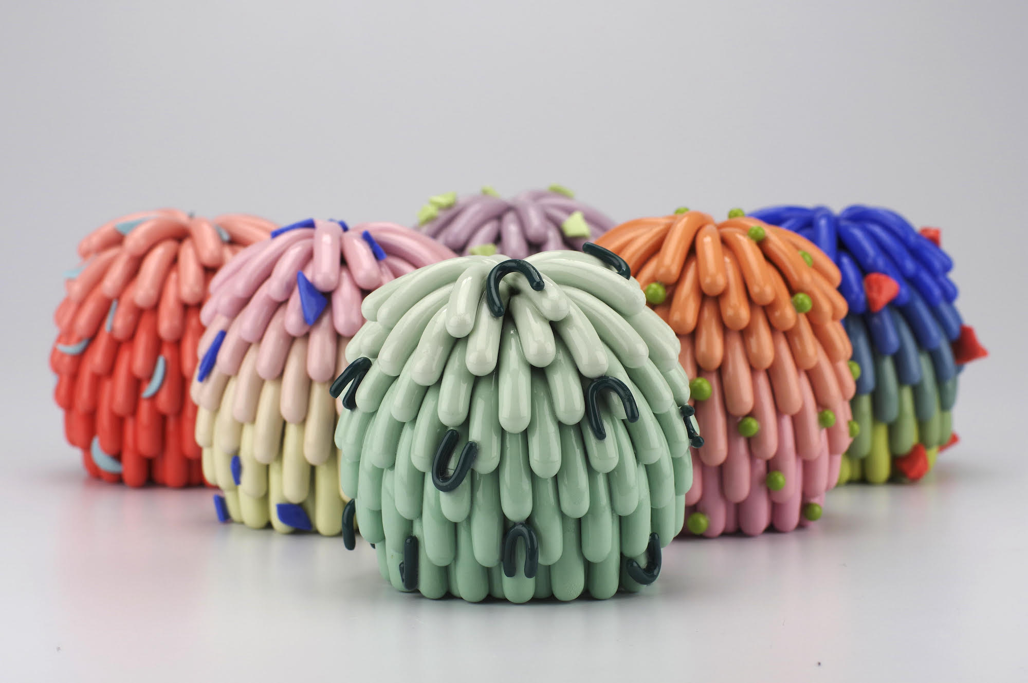 Linda Lopez’s Playful Ceramic ‘Dust Furries’ Pick Up Detritus Like Pebbles and Peas in Their Colorful Coats