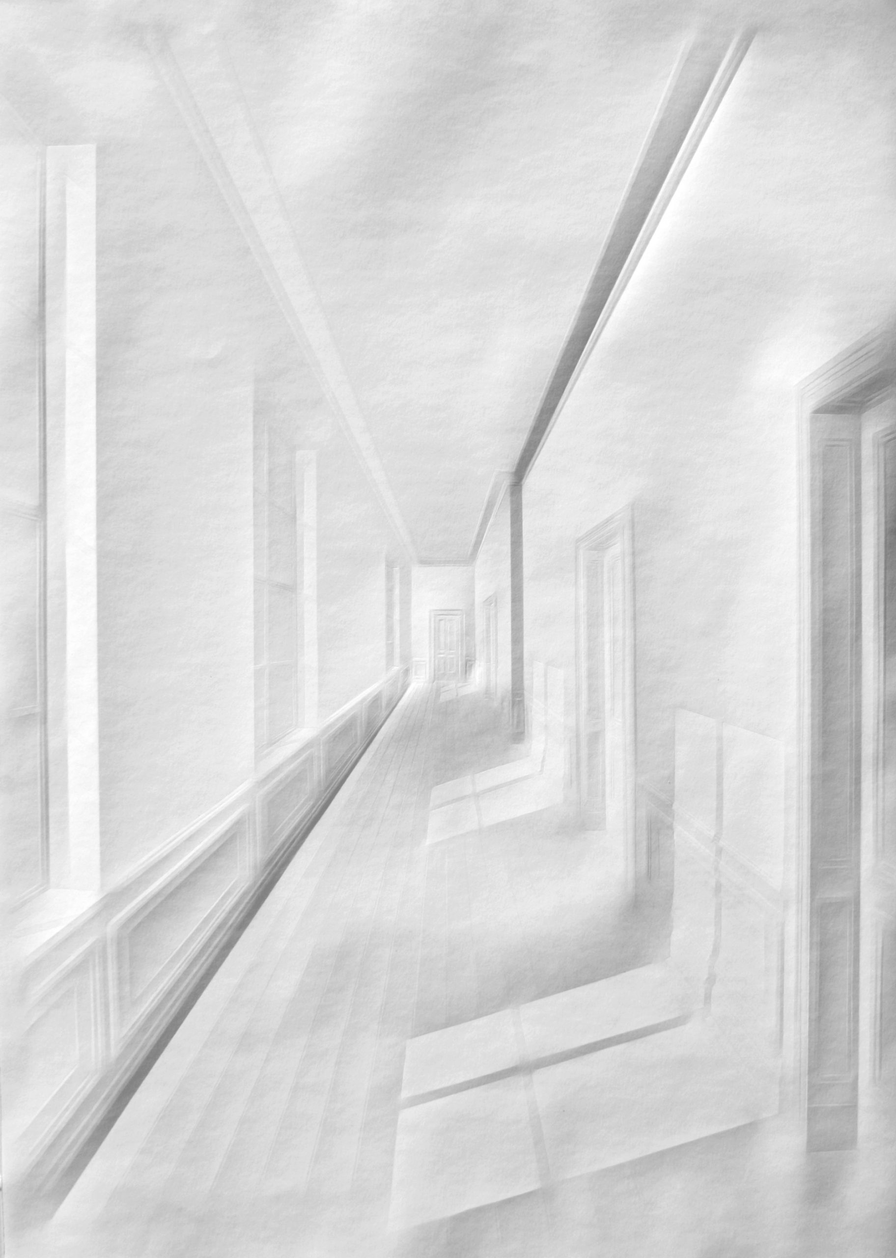 “Untitled (Light in Corridor)” (2020), folded paper, 70 x 50 centimeters