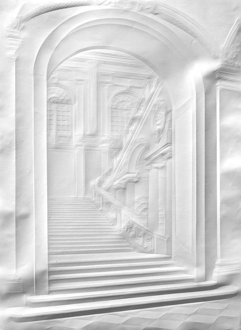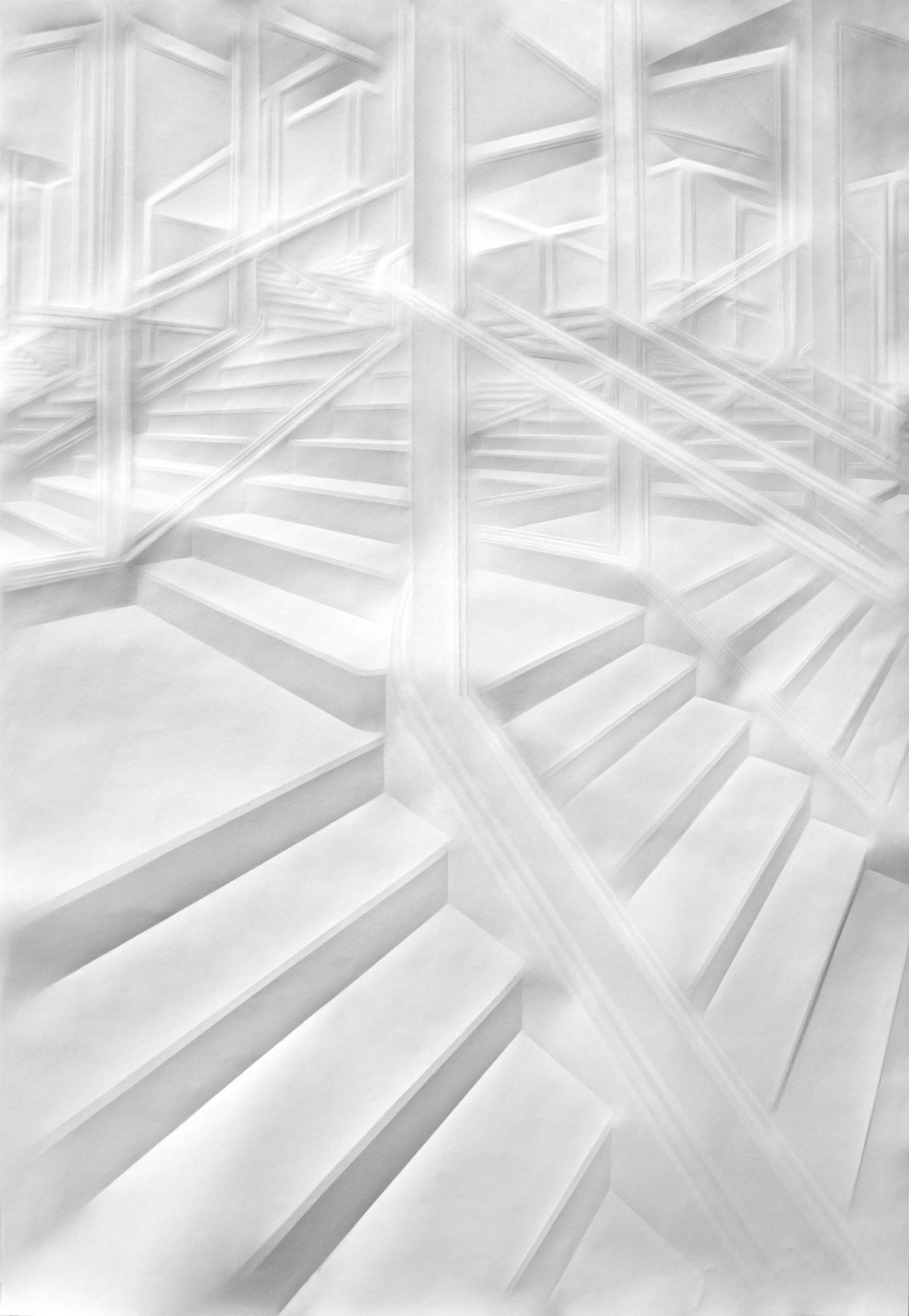 “Untitled (Grand Stairway)” (2013), folded paper, 70 x 50 centimeters. All images © Simon Schubert, shared with permission