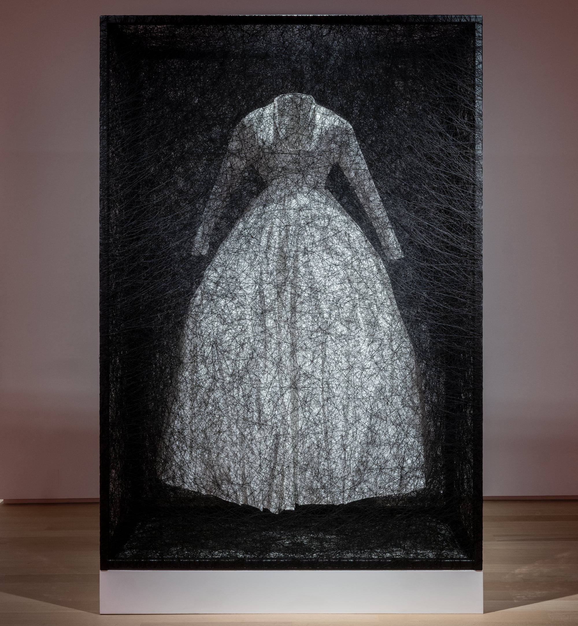 One of the works features bulging cylinders and dangling threads in red, while another white structure traps numerous book pages within its midst. Created during a two-week period, Shiota envisions the installation as connecting personal memory and the collection of knowledge. “I always thought that if death took my body, I wouldn’t exist anymore,” she says. “I’m now convinced that my spirit will continue to exist because there is more to me than a body. My consciousness is connected to everything around me, and my art unfolds by way of people’s memory.” The show also includes previously unseen drawings and sculptures, many of which contain quotidian objects that prompt questions about how items become meaningful, sentimental, and precious with use.