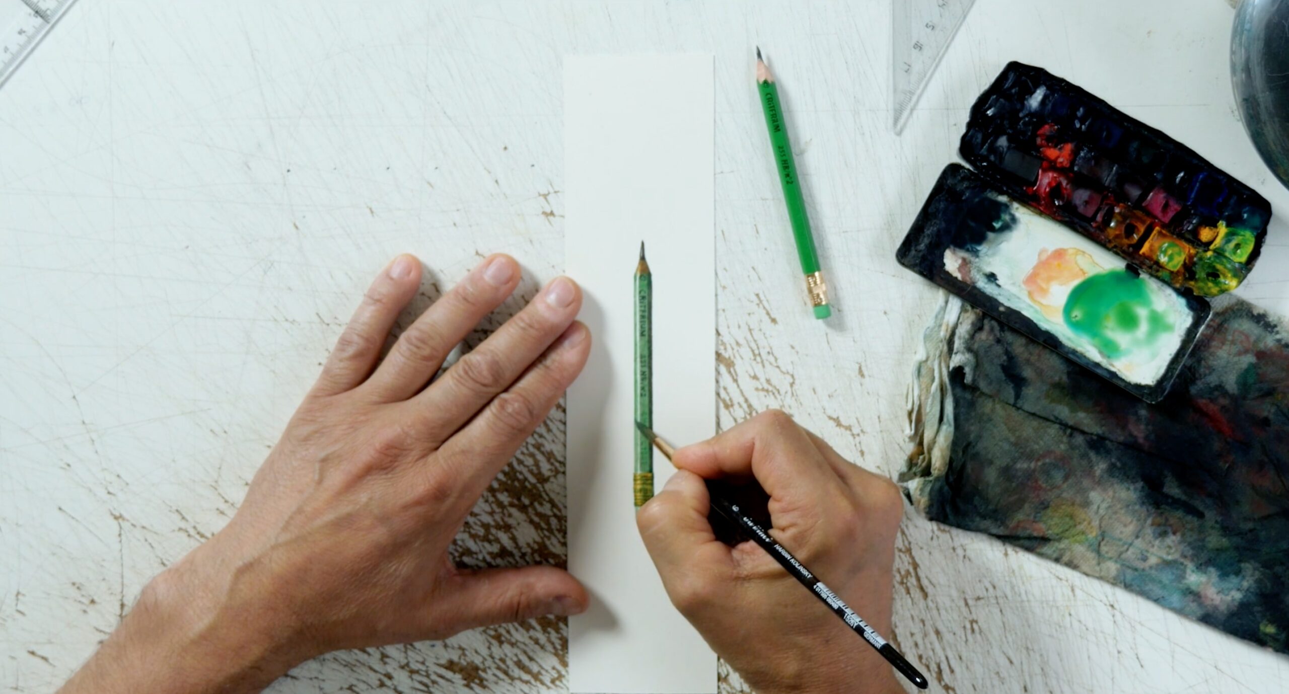 Items you might find on a shelf in the garage or packed away in the basement—like wrenches, your old MP3 player, key fobs, or spare light bulbs—become stars in their own right in Alain Biet’s mesmerizing animation. “Grands Canons,” which translates from French to “Big Guns,” opens with a close-up of the artist drafting a realistic, green pencil in watercolor. Once the rendering is complete, we meet another pencil, and another, as a “visual symphony” of thousands of precise drawings unfolds.