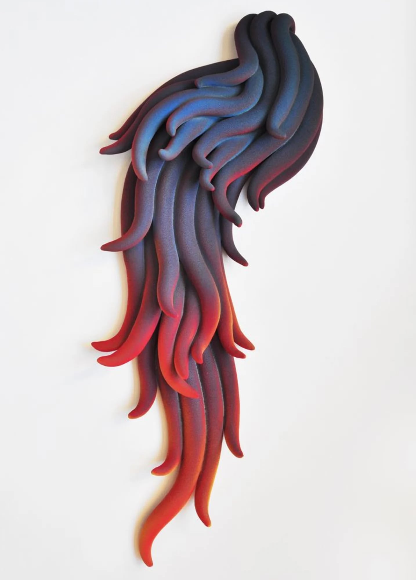 “Red and blue untangled silhouette n°1” (2023), glazed stoneware, 116 x 46 x 13 centimeters
