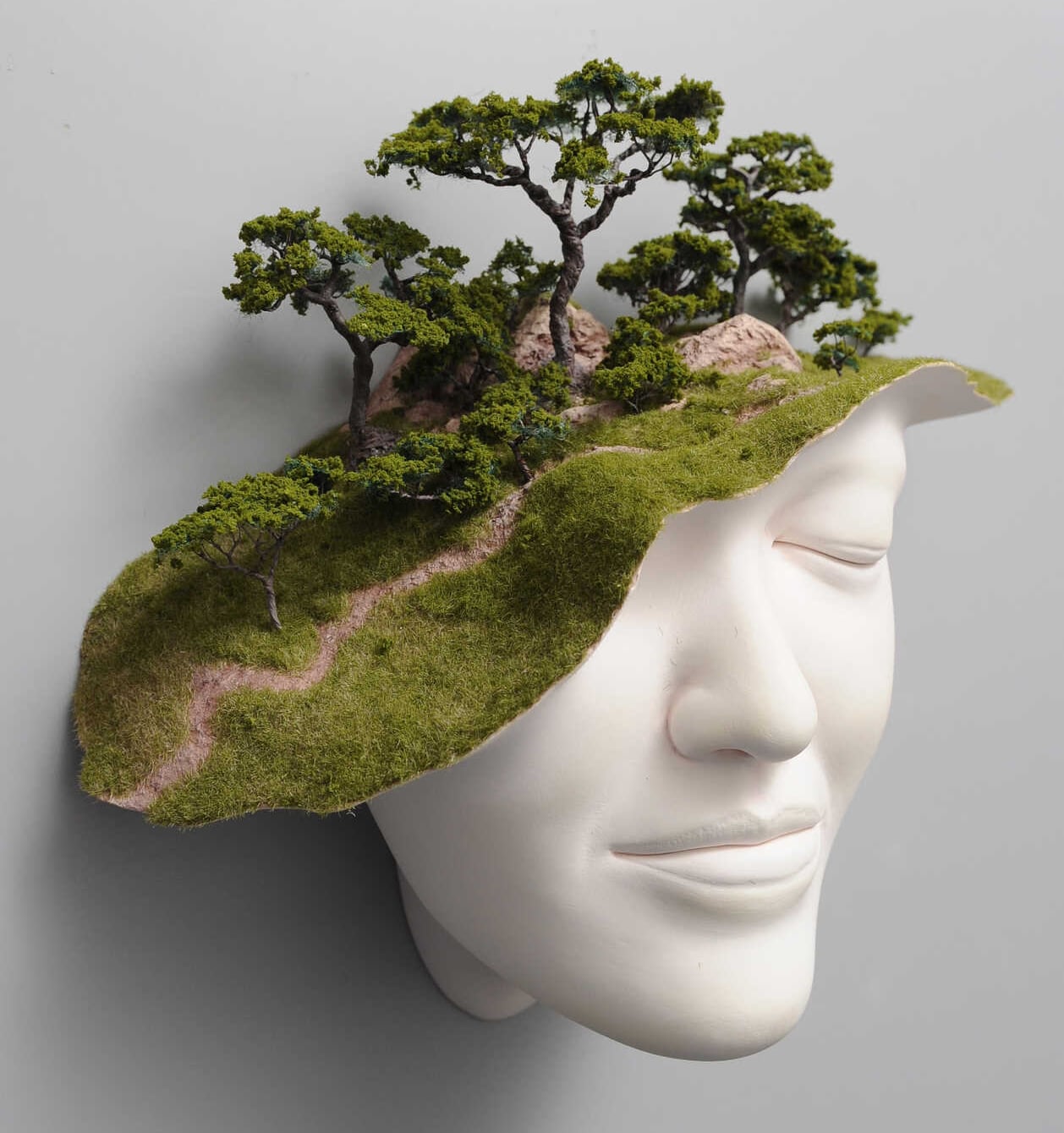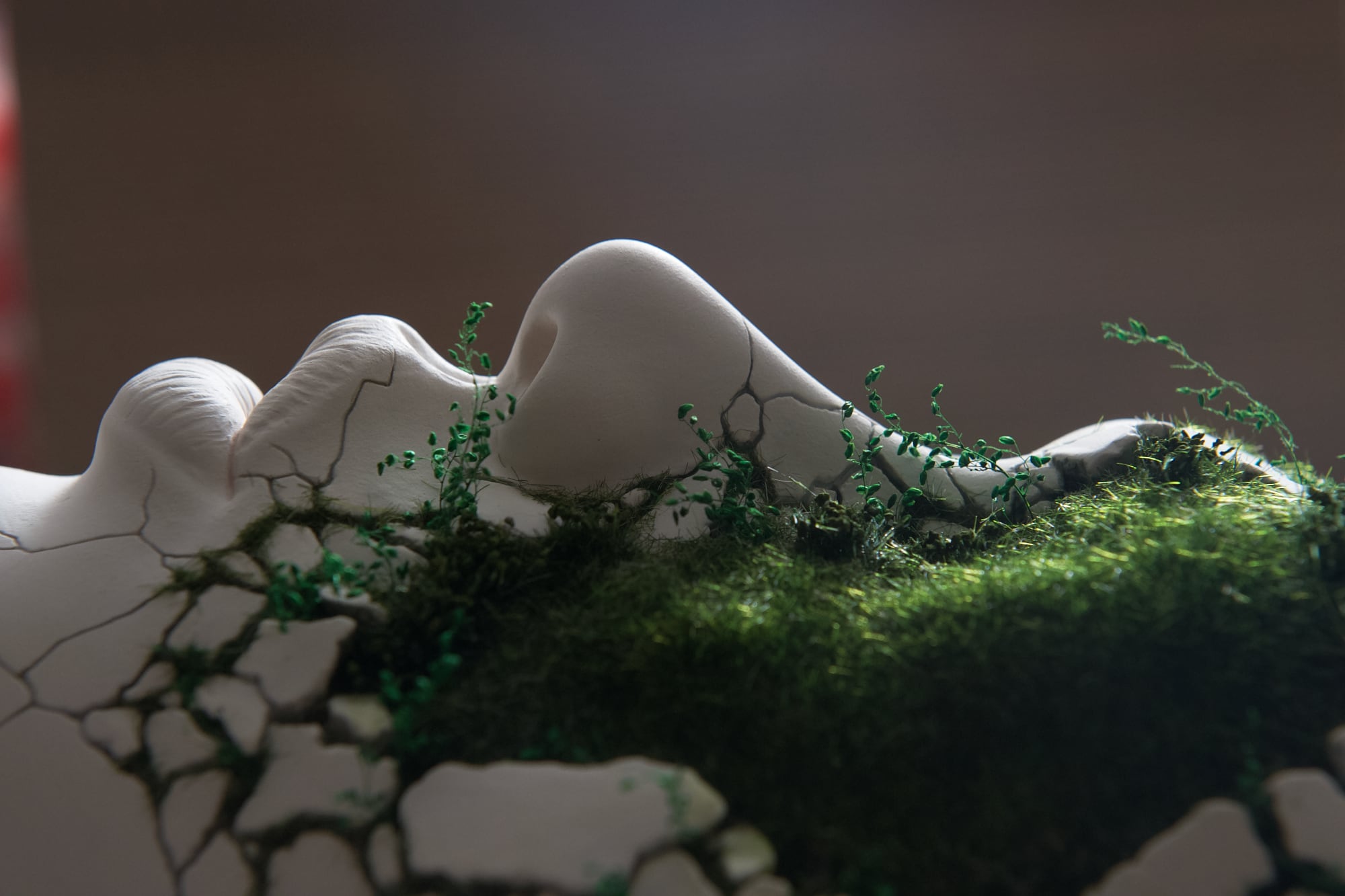 “Cross My Mind” (2020), porcelain, fake grass, and trees, 11.8 × 11.8 × 5.5 inches. All images © Johnson Tsang, shared with permission
