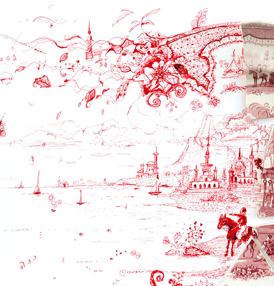 This article comes from the Internet:In ‘Fragmented,’ Expansive Scenes Rendered in Ink by Robert Strati Emanate from Shattered Porcelain Plates