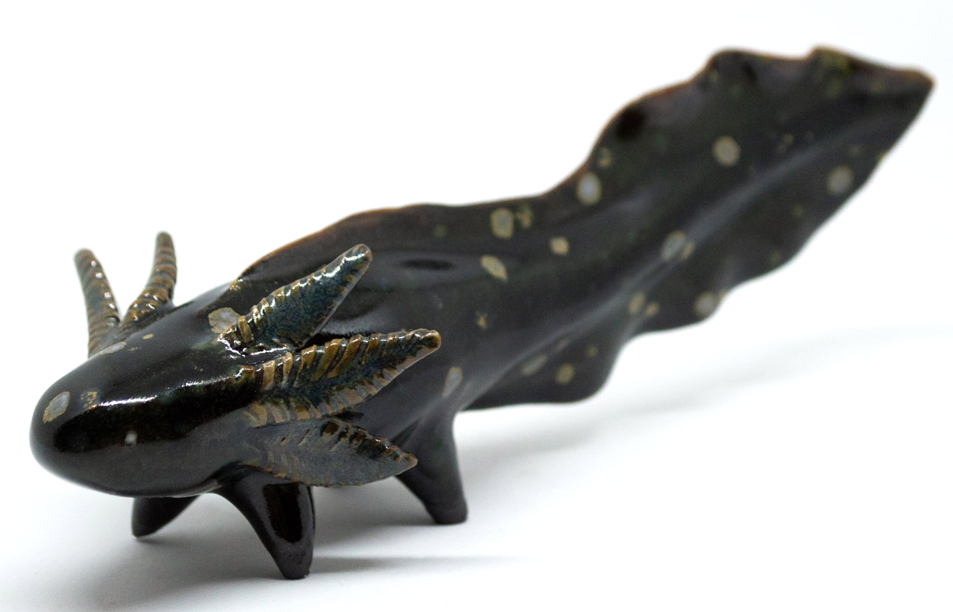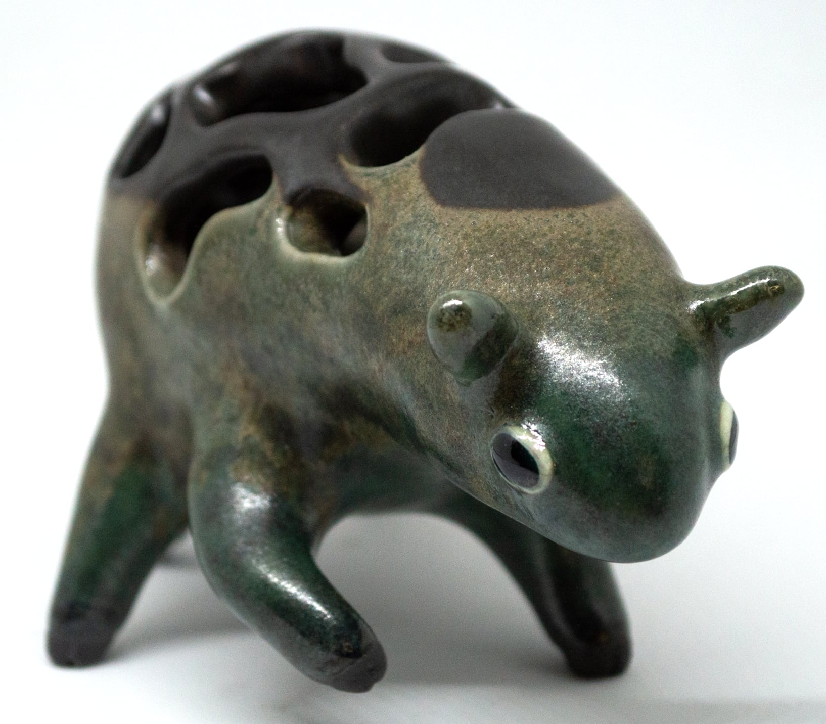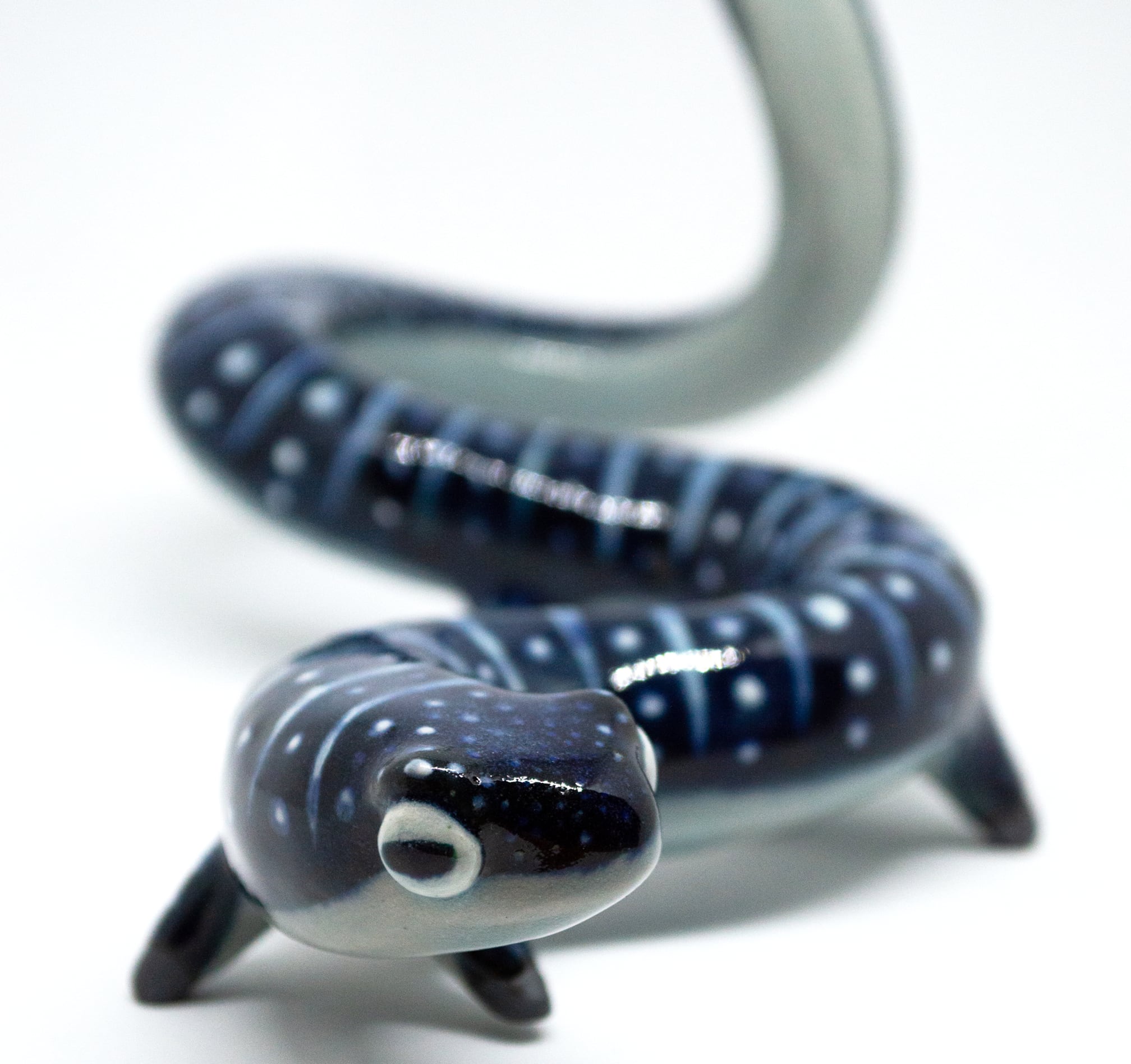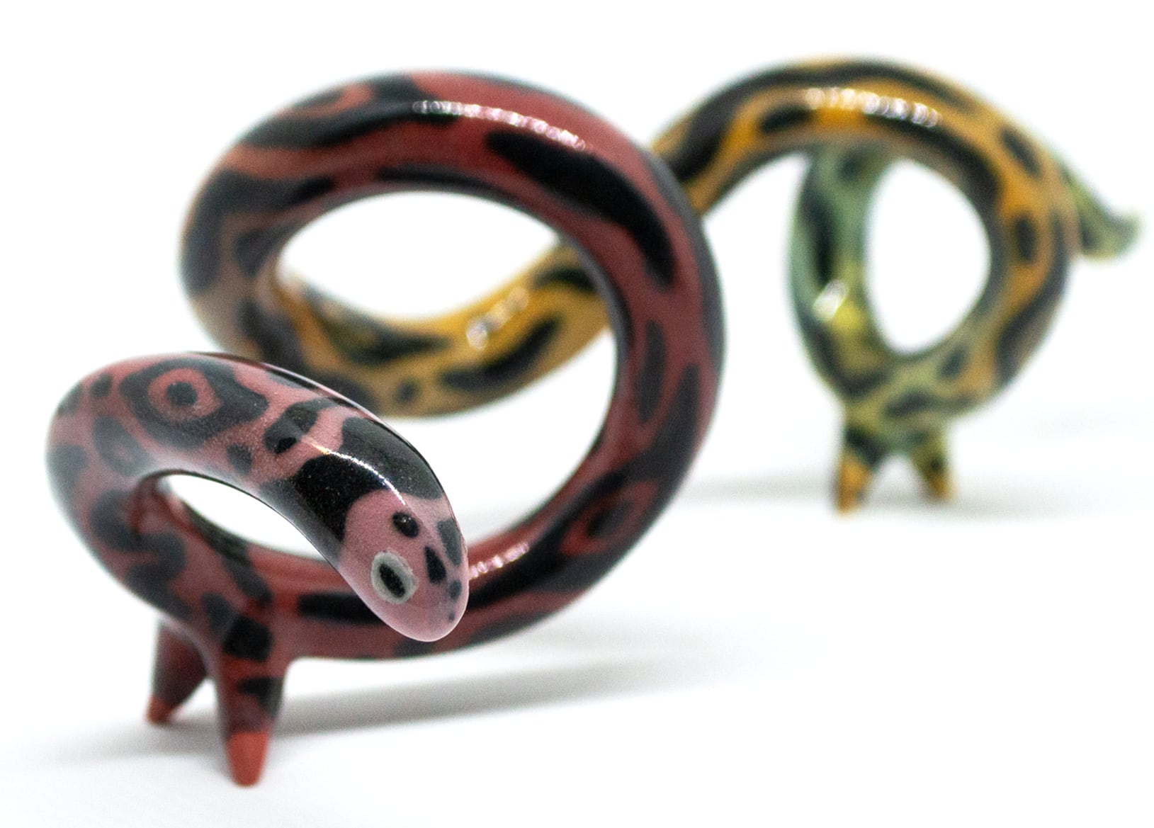 Eugene-based artist Miranda Zimmerman, a.k.a. Faunwood, brings a playful ceramic menagerie to Portland this month for Slither, a nearly sold-out solo show at Antler Gallery. Informed by Faunwood’s background in evolutionary biology, the adorable creatures meld art and science and are miniature renditions of amphibians and mammals, all stylized with the artist’s use of wide eyes and mottled glazes. The hand-sculpted characters are expressive and reflective of the organisms’ real-life anatomy, and their unique dispositions emerge through the firing process. “Every ceramic critter I make comes out of the kiln with its own little personality and sass, sometimes completely different from what I’m expecting,” the artist writes on Instagram.