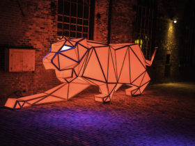 “Mariposa Relámpago” (2023), mixed media, approximately 13 × 8.5 × 35 feet