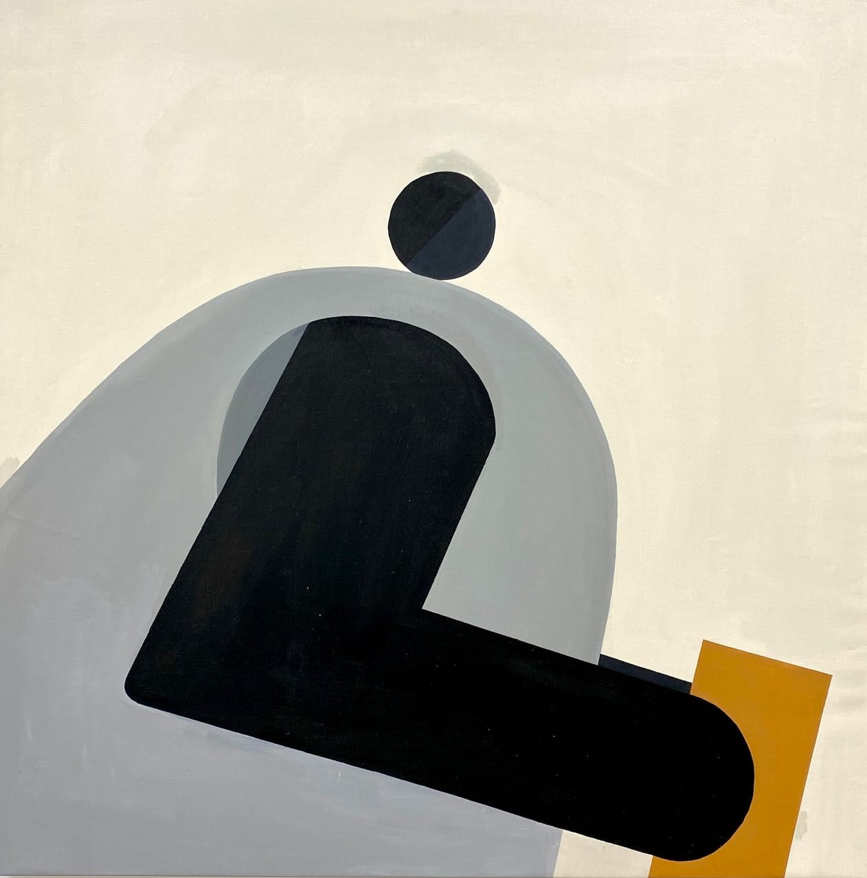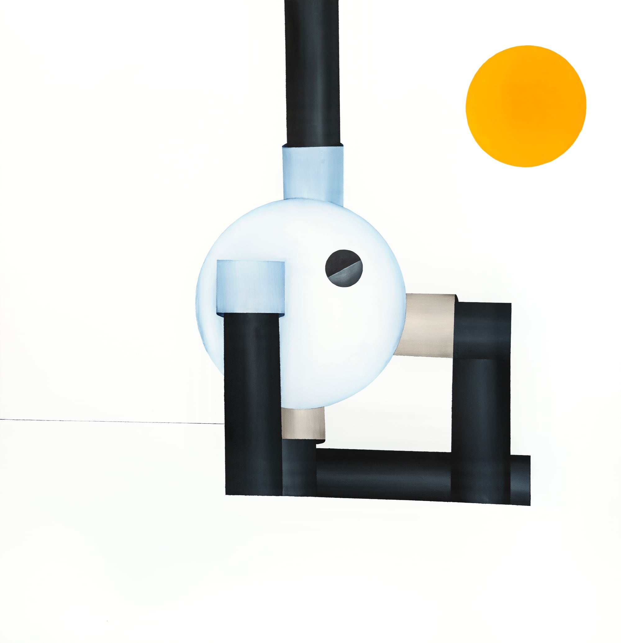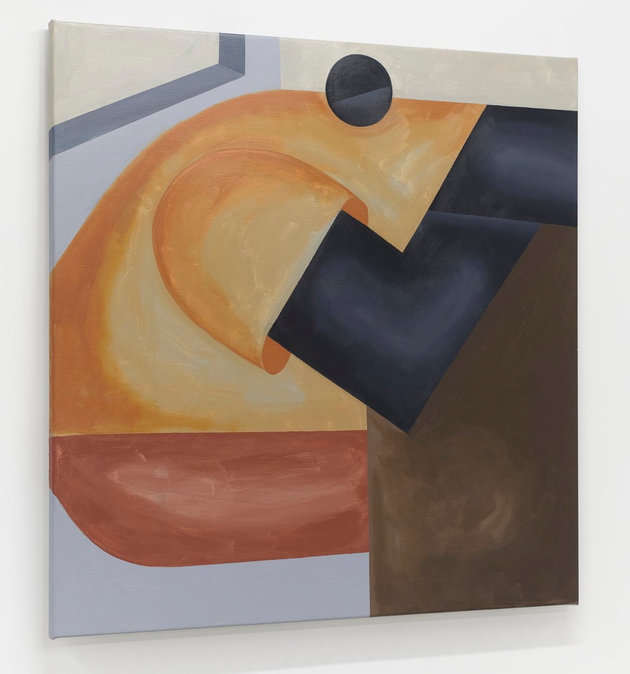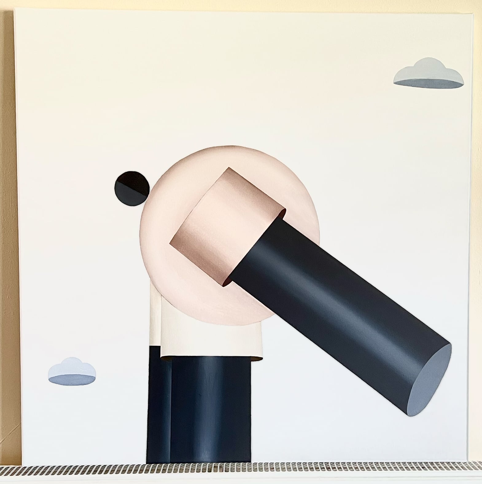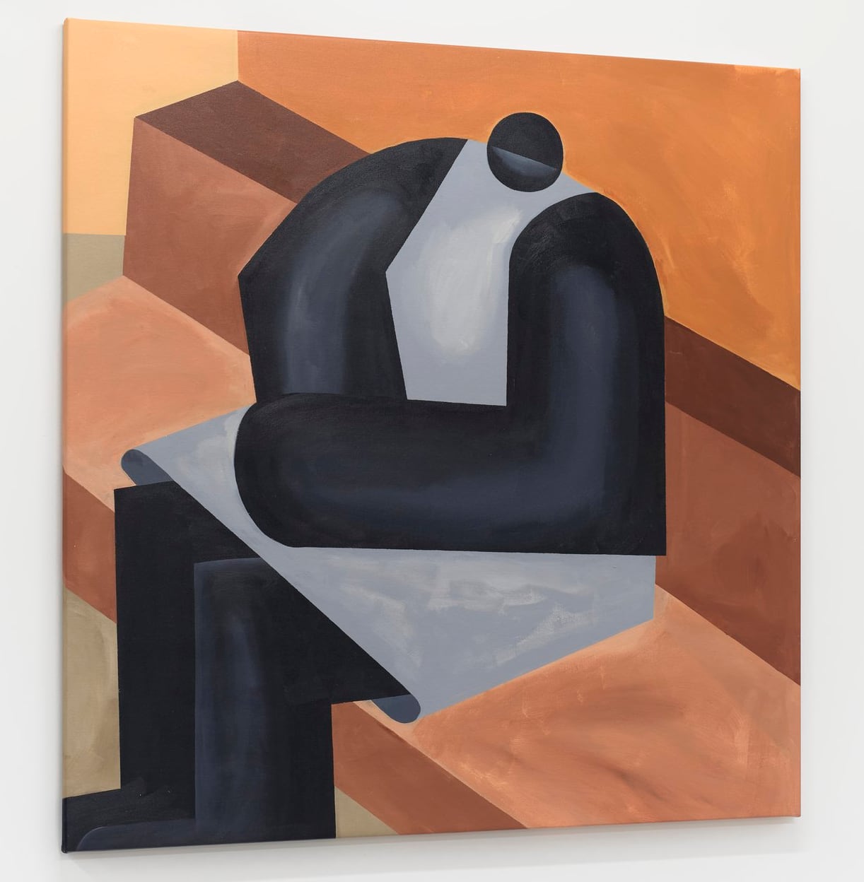 In his most recent paintings in acrylic, Kpe Innocent reduces the human body to its rudimentary forms. The Accra, Ghana-based artist translates arms, bellies, and heads into cylinders and geometric shapes rendered in minimal palettes of black, white, and pastel colors. Occupying vast swaths of negative space, the figures have “room to pause and breathe,” and the paired-down settings draw greater attention to the engineered anatomy.