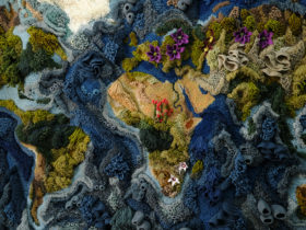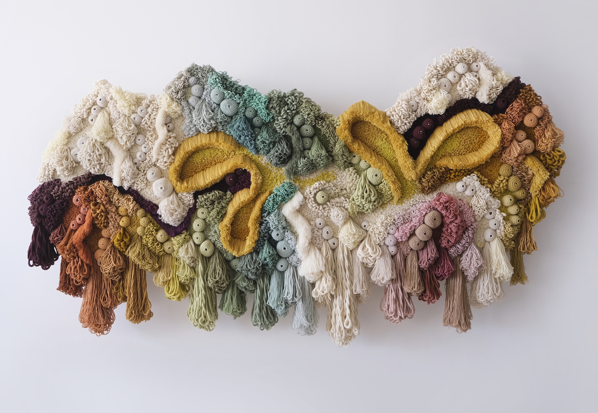 Sprawling tufts of looped, wound, and crocheted yarn scale walls and floors in Vanessa Barragão’s elaborate, nature-inspired textiles. The Portuguese artist (previously) draws inspiration from the textures of coral, rock pools, botanicals, and the cosmos to compose expansive fiber pieces.