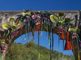 A Dreamy Fiber Installation by Vanessa Barragão Transforms a Medieval Bridge into a Patch of Oversized Orchids