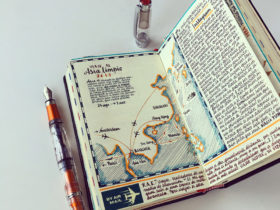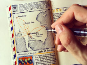 Rather than scrolling through photos from a recent trip, José Naranja (previously) remembers his travels through exceptionally detailed sketchbooks with notes, illustrations, and ephemera collected during his visits. The artist and author is an avid tourist and dedicated observer, and he saturates the blank pages of his Moleskines with watercolor and ink drawings of airplanes, film characters, and maps. Like most of us, Naranja was unable to travel during much of the last few years, although he’s resumed his adventures and frequented Thailand and other parts of Asia, which are reflected in his latest spreads.