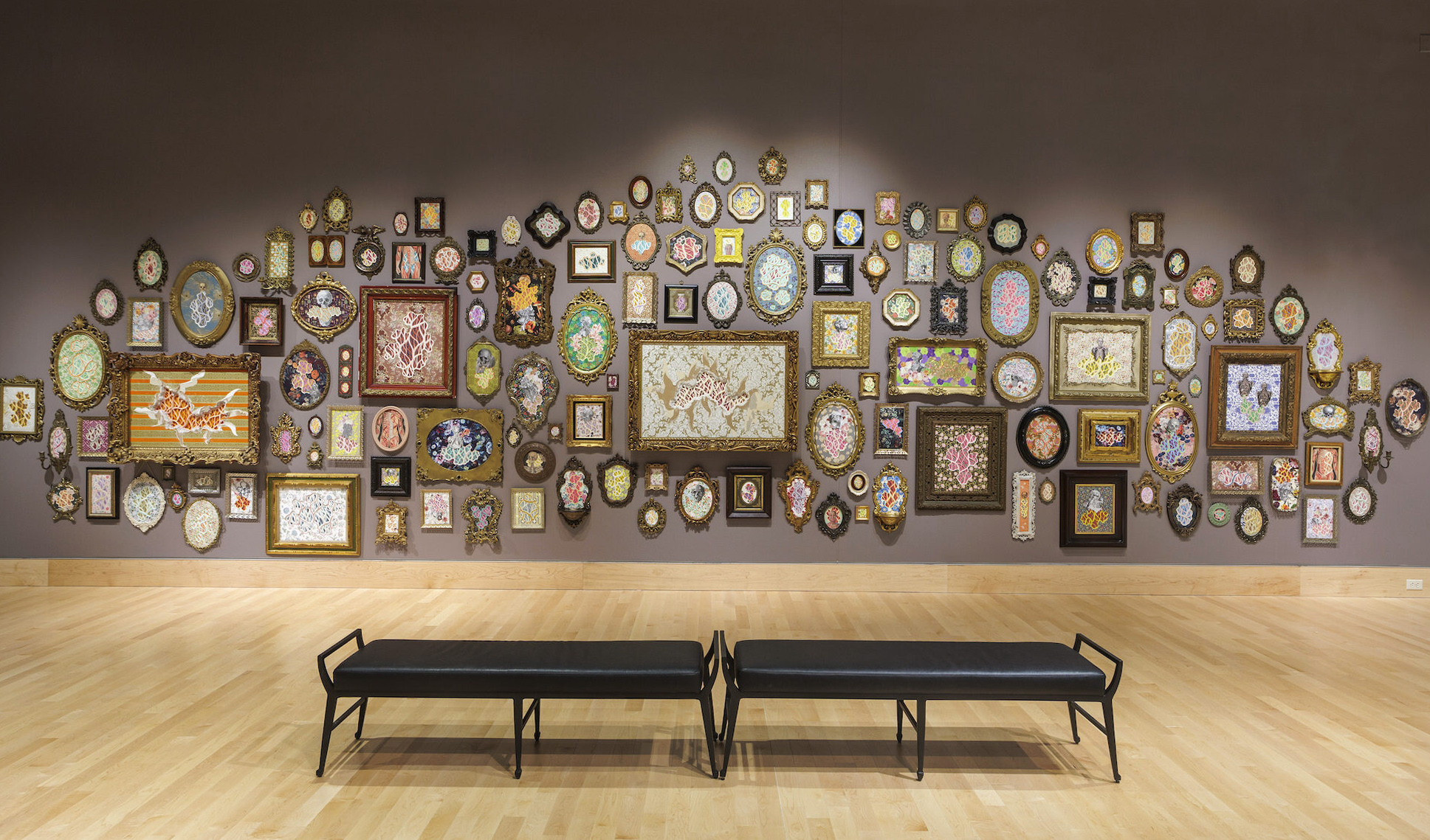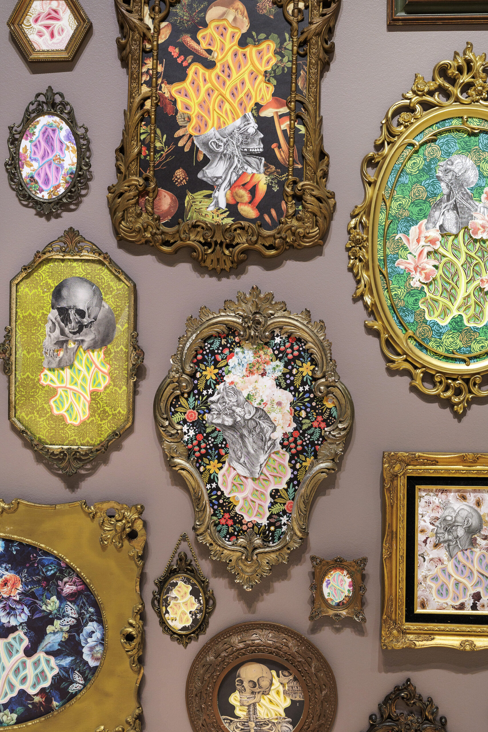 Charles Clary, “Memento Morididdle” (2023), hand-cut paper and found frames, 96 x 240 inches. All images courtesy of the artists and the Torggler Fine Arts Center, © the artists, shared with permission