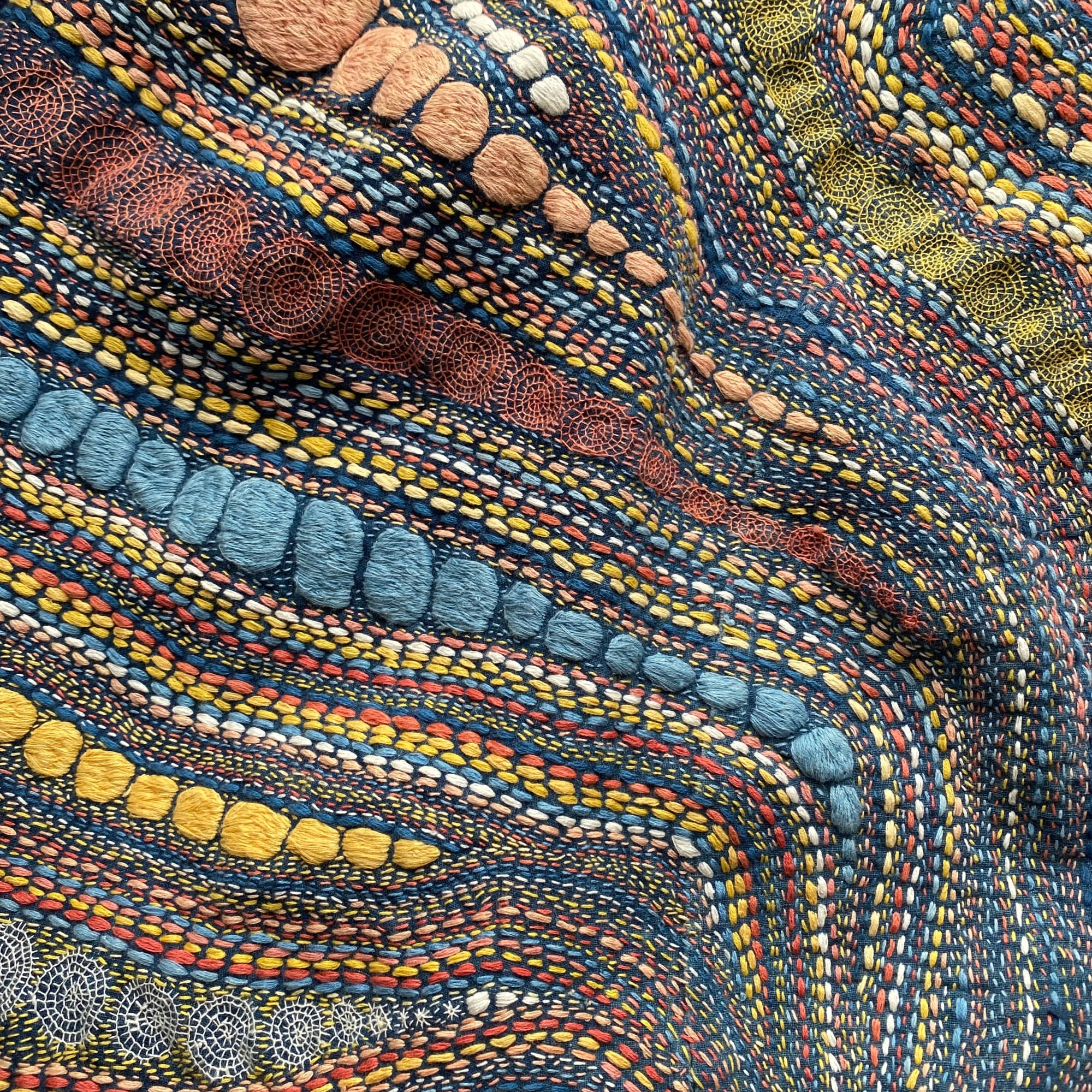 Dense Embroideries Map Celestial Expanses and Abstract Landscapes by Lindzeanne