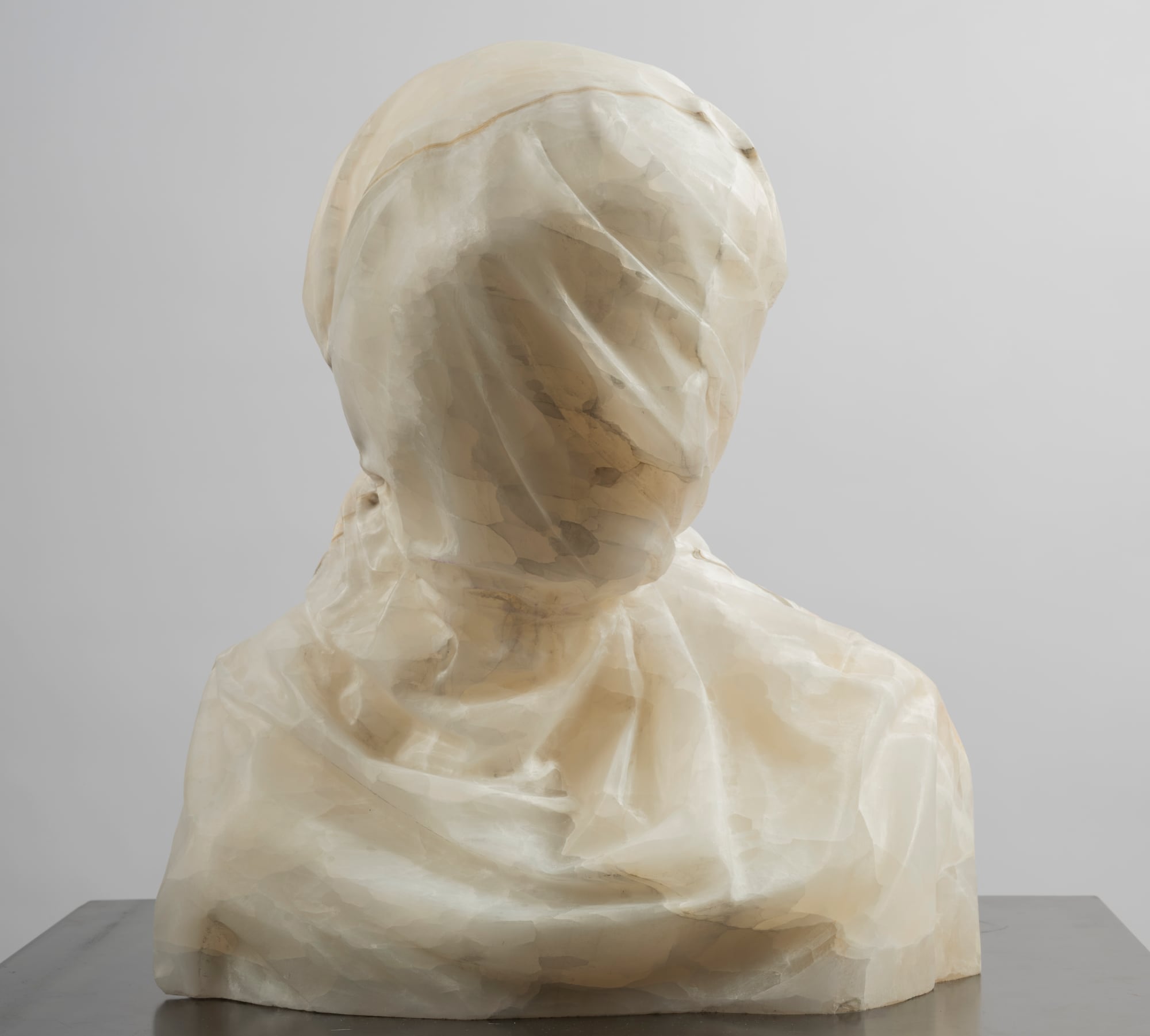Many of the sculptures shown here will be on view in October for Pelleti’s solo show, Eredità, at Bowman Sculpture Gallery in London. Included is “White Noise,” a new bust that appears wrapped in a gauzy veil and evokes the towels the artist uses in his studio to cover finished works so that they’re protected from dust. He explains: