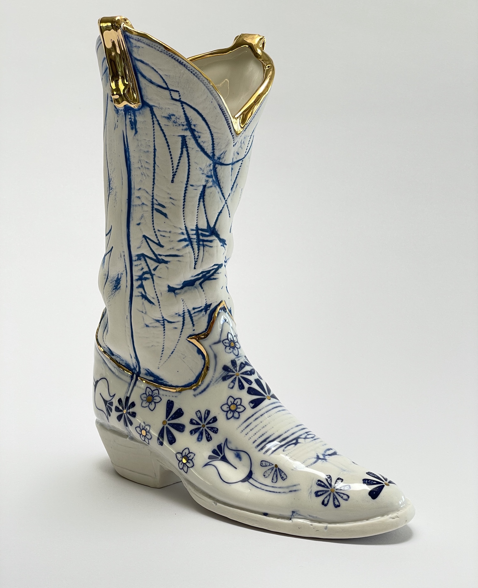 DeBoer attended ceramics classes in community college while he was still in high school, and as a student at the Kansas City Art Institute, he was introduced to porcelain. It sparked a practice he has pursued since. Portraying objects we typically associate with heavy use, like sneakers, radios, and basketballs, the artist elicits a playful tension between fragility and function. “The subjects, such as the sneakers, have a shelf life before the soles crumble and bubbles pop, and having the ability to preserve them and give them a new life is interesting to me,” he says.