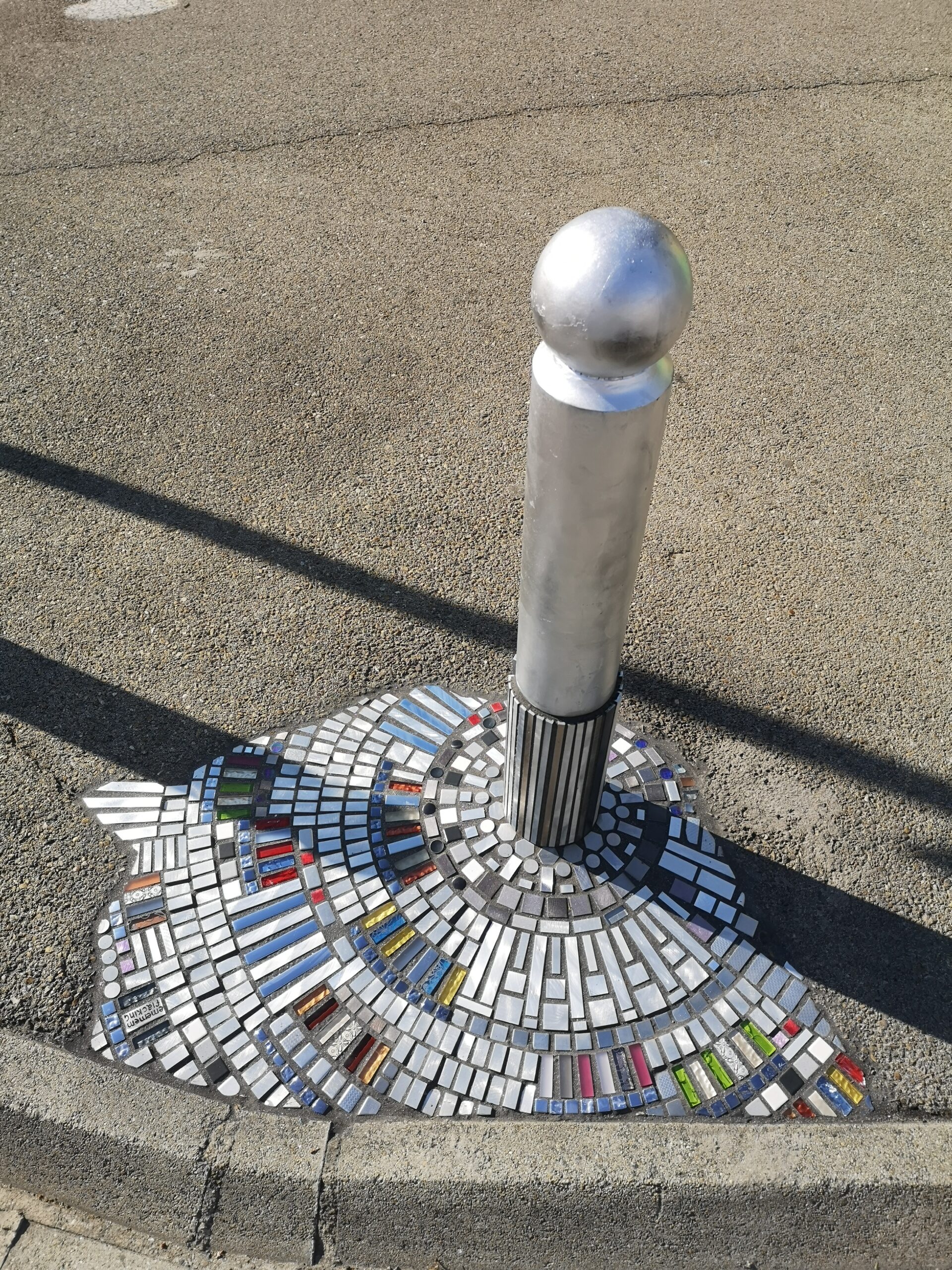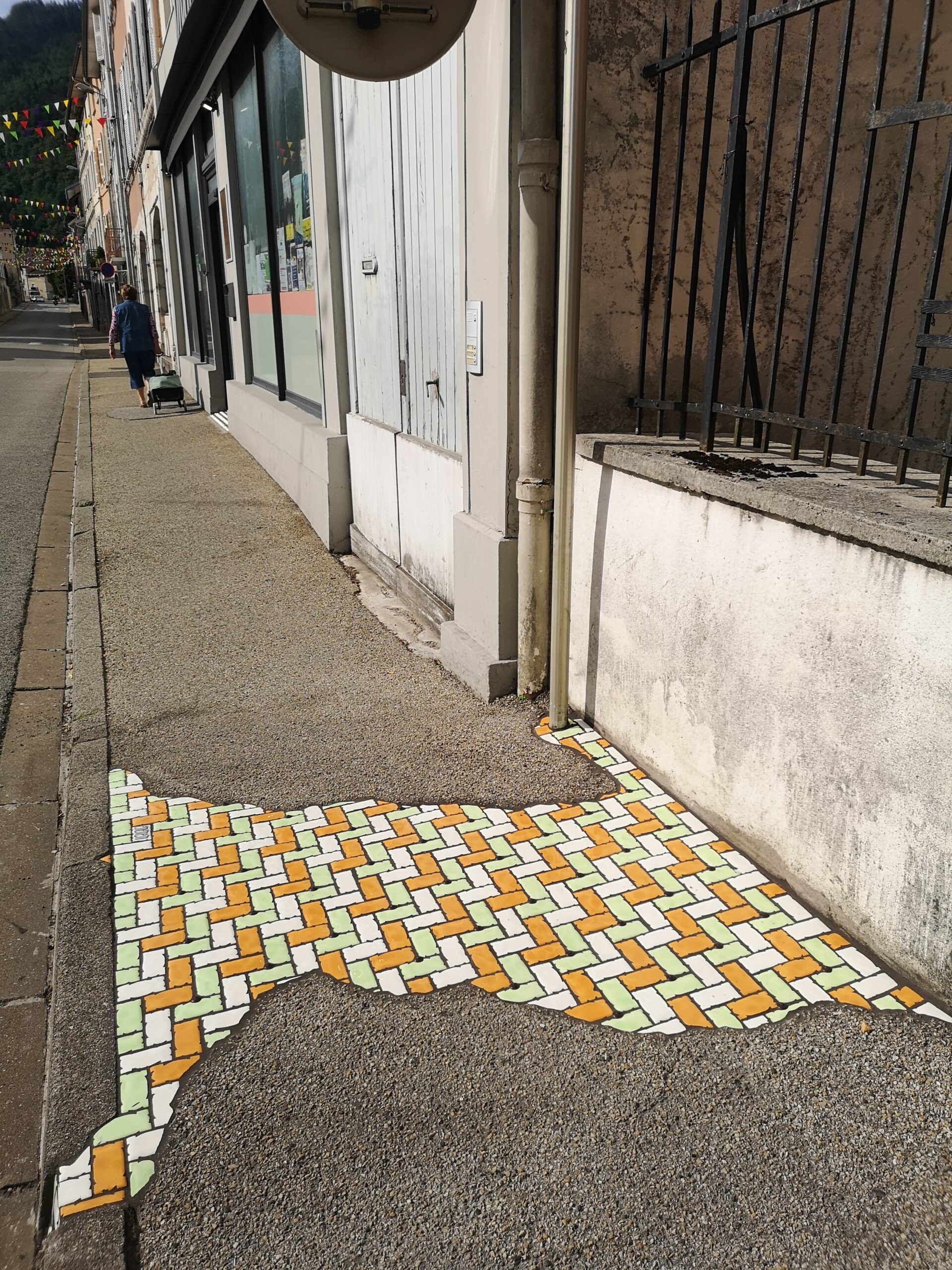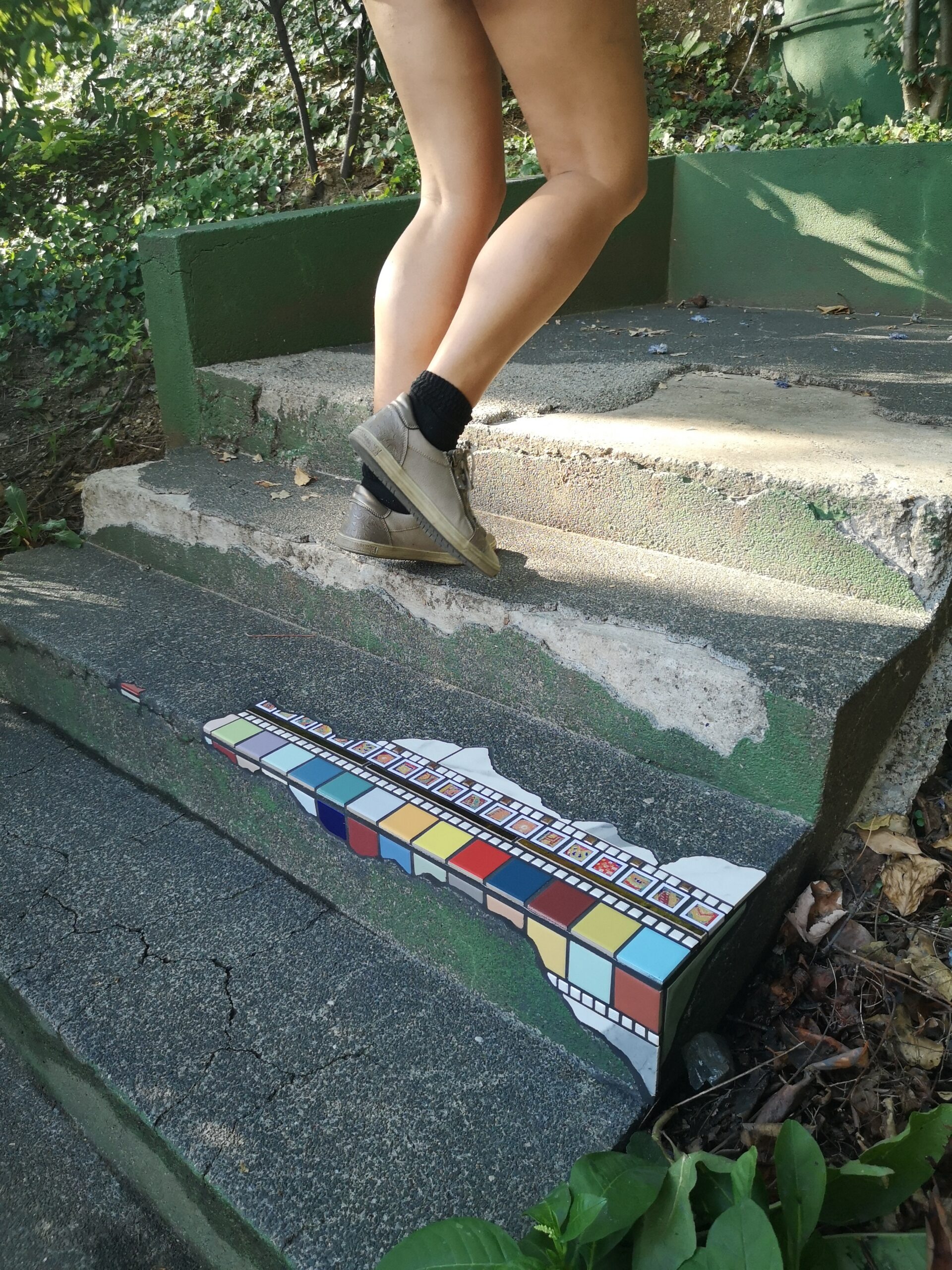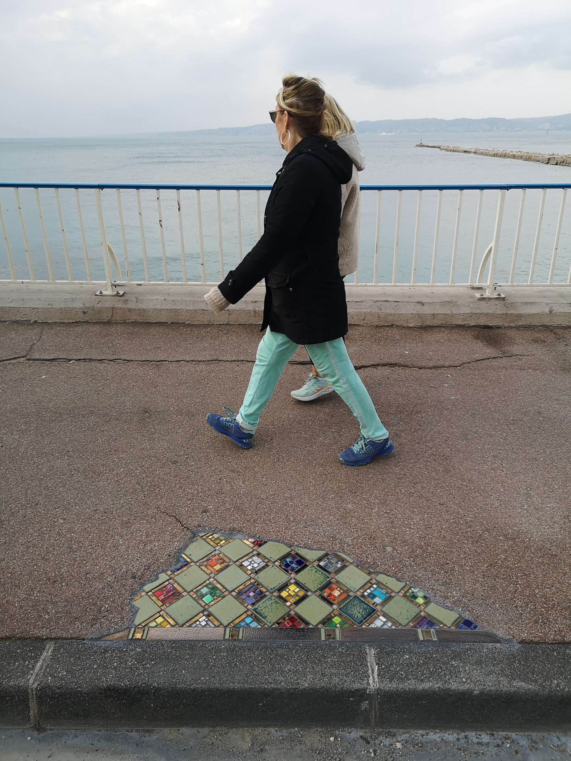 No crack in a wall, step, or curb is safe from Ememem’s delightful interventions. The Lyon-based artist (previously), also known as “the pavement surgeon,” continues to scout out gaps in sidewalks that he fills with colorful tiles. Akin to kintsugi, the Japanese practice of repairing broken pottery with gold to embrace the history of the object, Ememem’s technique doesn’t hide imperfections so much as highlight their possibilities. While making the surfaces safer to traverse, he adds gives new life to decaying urban walkways.