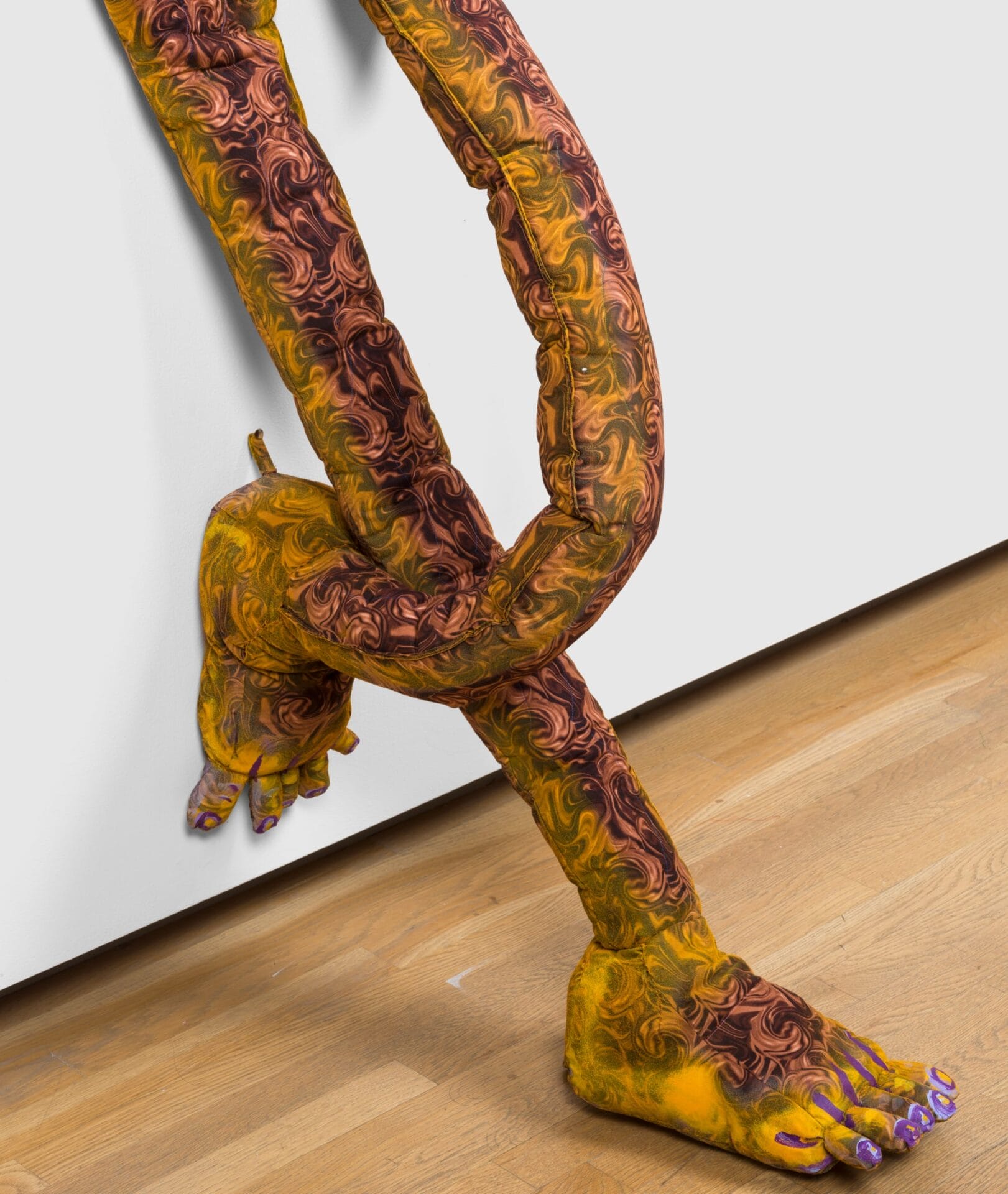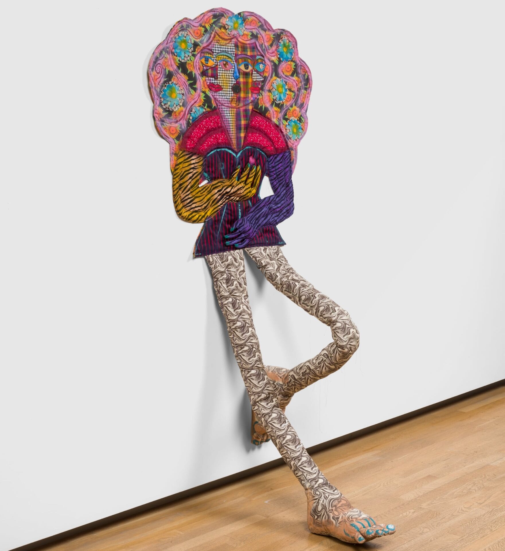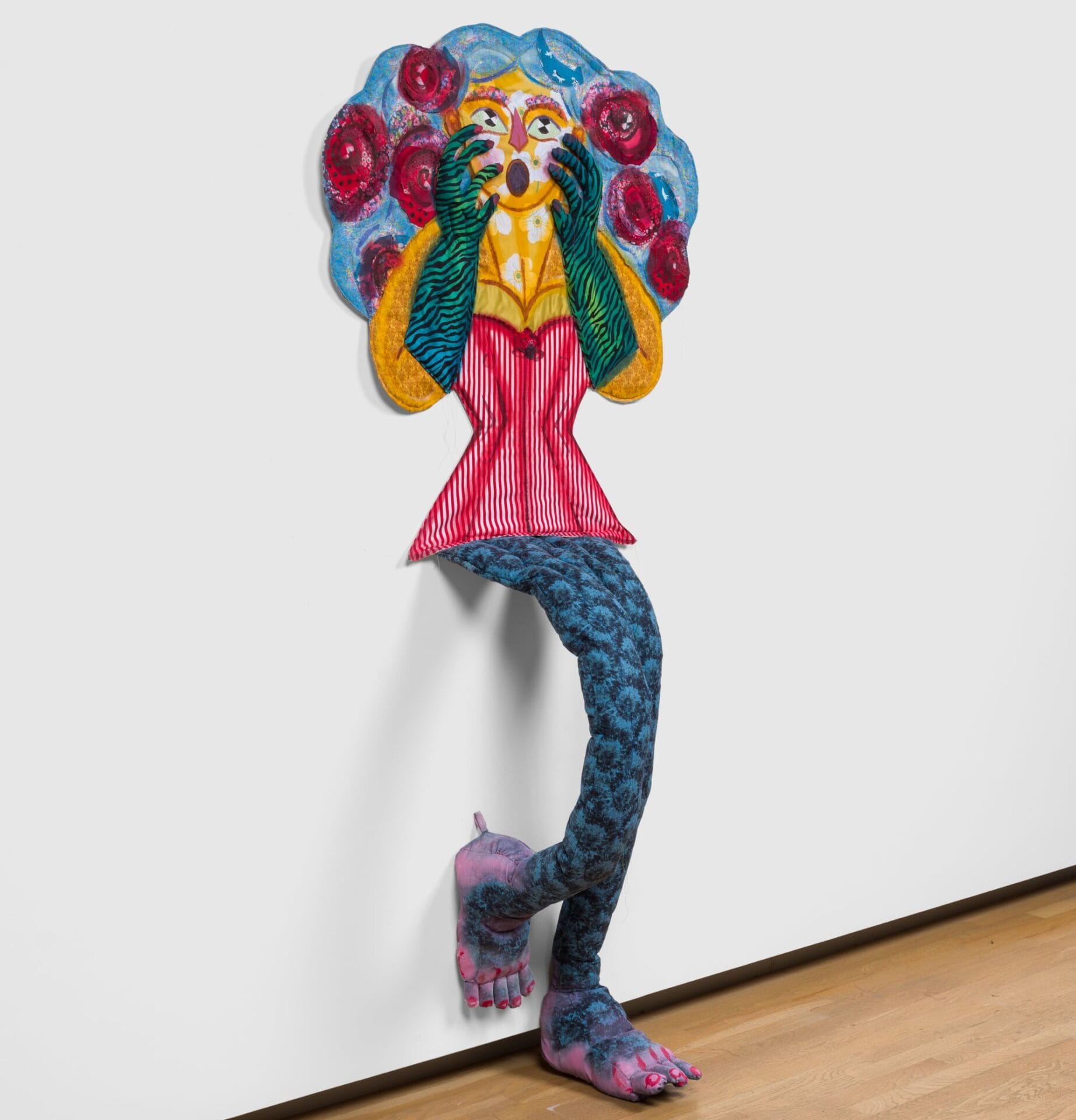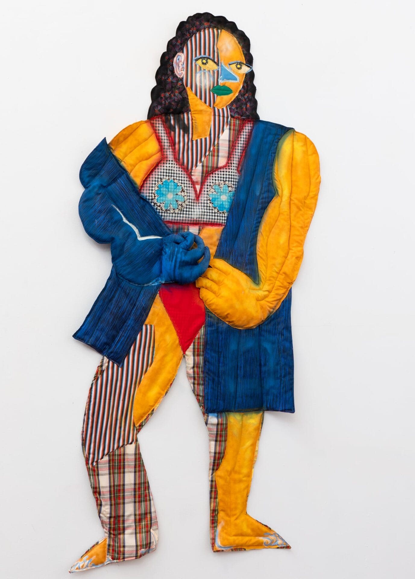 “Donna” (2022), fabric, thread, batting, stuffing, spray paint, and latex paint, 70 ½ x 34 x 2 ½ inches