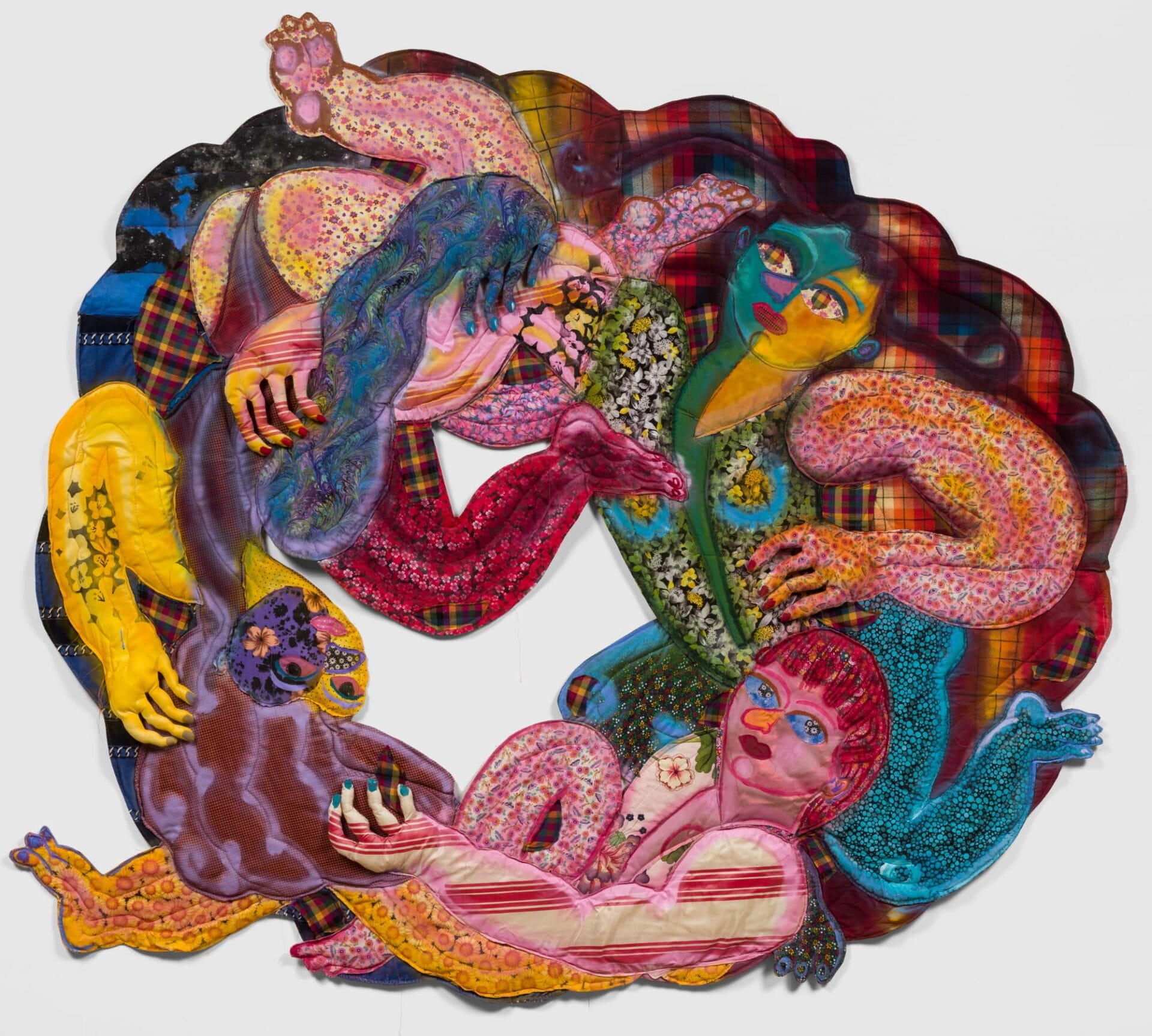 Maria A. Guzmán Capron’s Entwined Figures Emerge from Boldly Patterned Patchworks