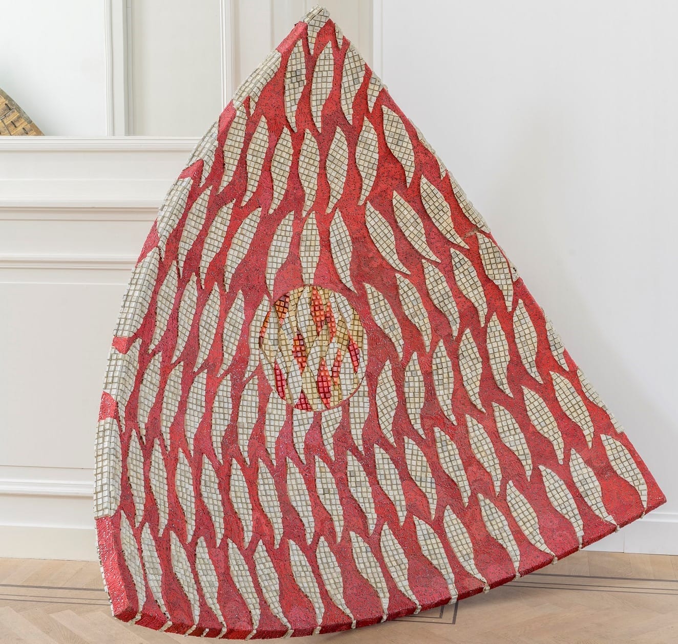 Sime draws on ancient Ethiopian carving, beading rituals, and weaving techniques to connect a rich artistic heritage to contemporary mass production and consumerism. The title, Eregata እርጋታ, is derived from the artist’s language, Amharic, the meaning of which Sime translates as tranquility, calmness, or serenity.