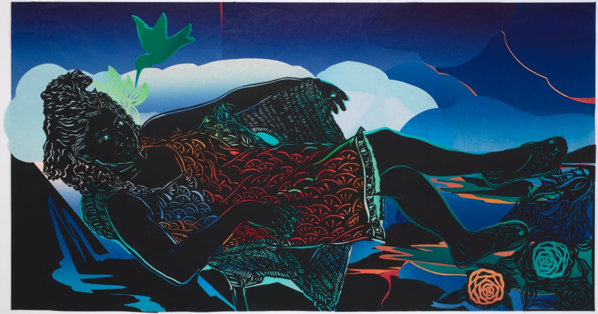 “Girl with Flowers II” (2022), paper cut with hand-printed color. Photo by Spike Mafford/Zocalo Studios, courtesy of the artist and Claire Oliver Gallery, New York