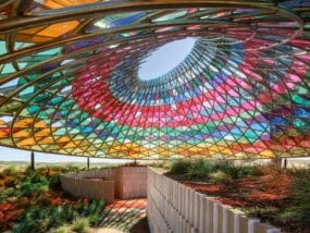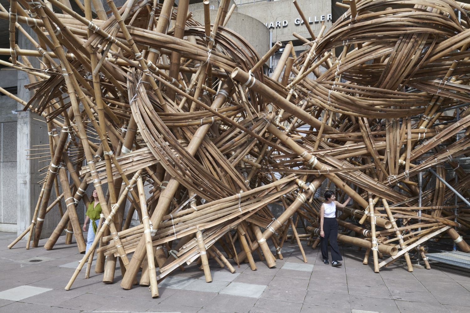 Last year, the artist constructed “वेणु [Venu]” outside of the Southbank Centre in London, which contrasted the building’s brutalist concrete exterior with the warm tones of bamboo, exploring themes of urban space, ecology, and community. Inside, visitors could engage with bamboo musical instruments, encouraging collective and spontaneous creativity.