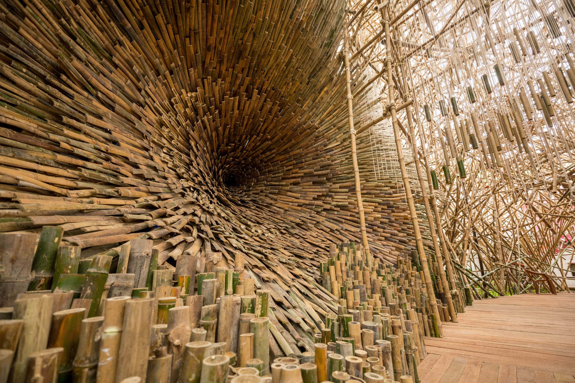 Immersive Bamboo Installations by Asim Waqif Whirl and Heave in Monumental Motion