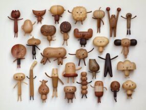 “The Queen and her sister squares” (2022), wood, acrylic, and graphite in seven parts, 28 x 47 x 24.3 centimeters