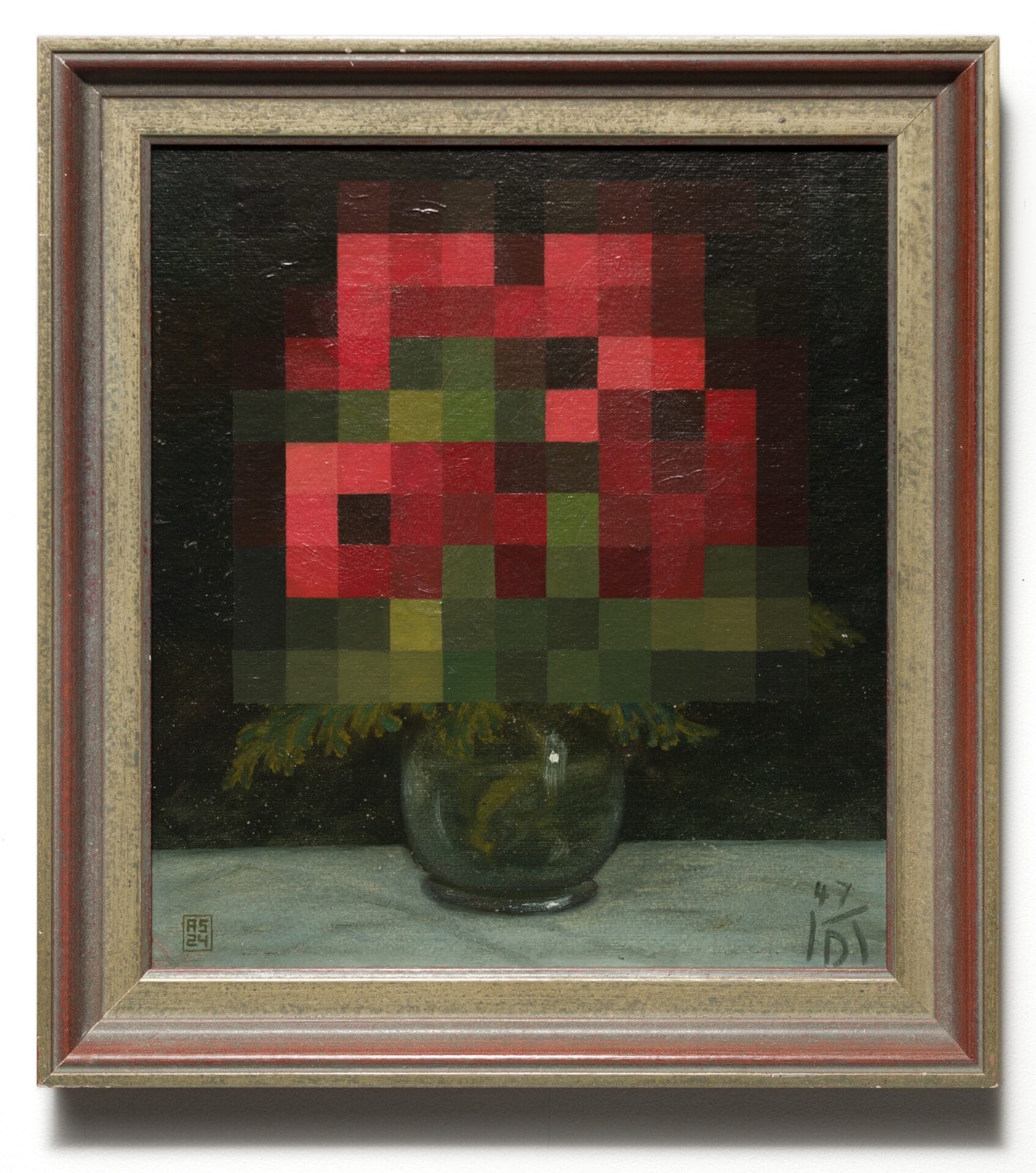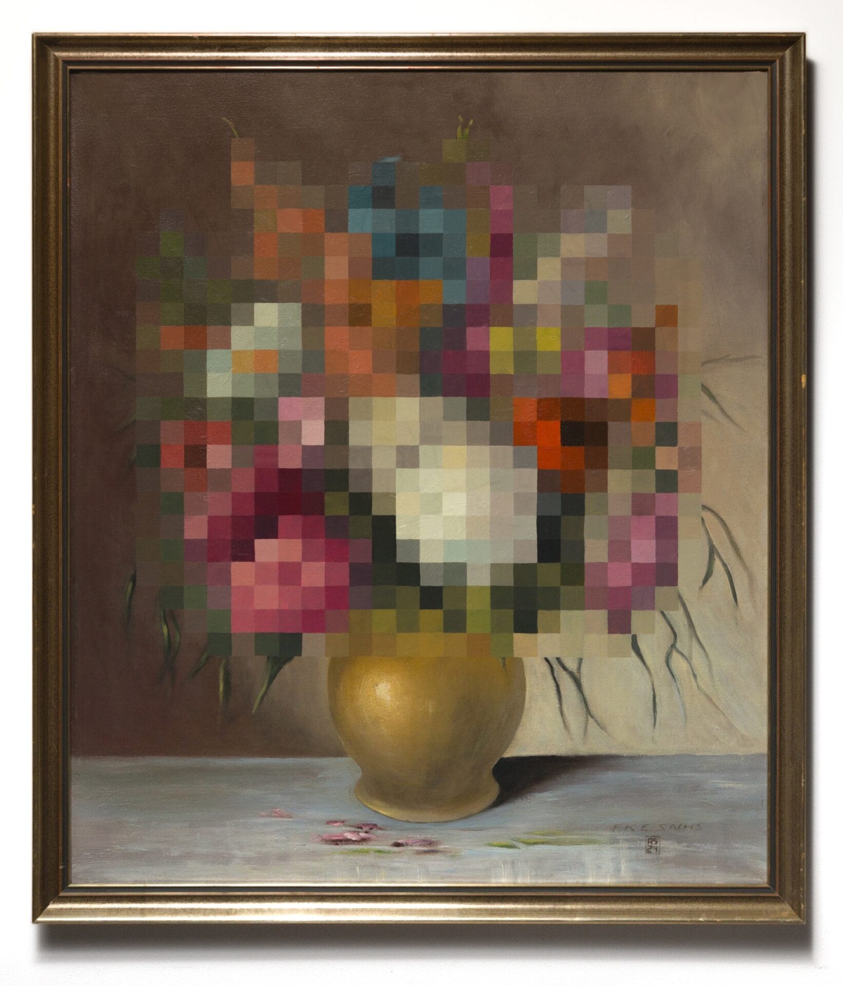 When the paintings that form the foundations of André Schulze’s compositions were made, people likely had never heard of a pixel. The German artist’s elegantly framed revisions of vintage originals (previously) playfully nod to the art historical legacy of still lifes while adding a contemporary, digital-inspired twist.