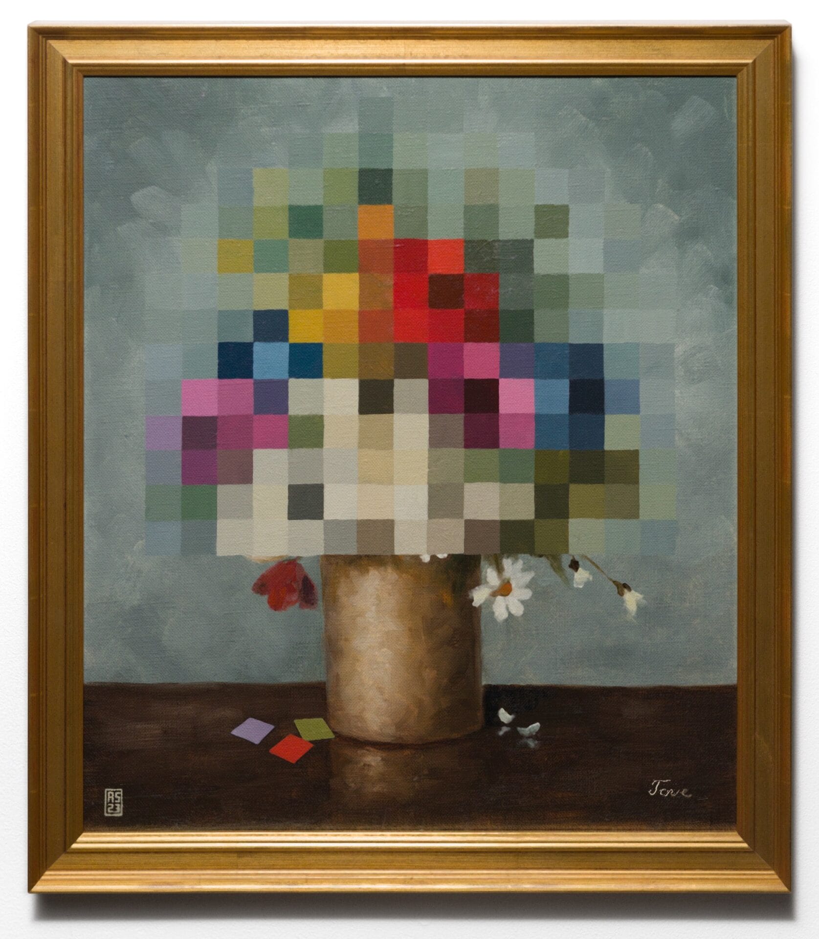 This article comes from the Internet:André Schulze Reimagines Traditional Still Life Paintings with Contemporary Pixellated Auras