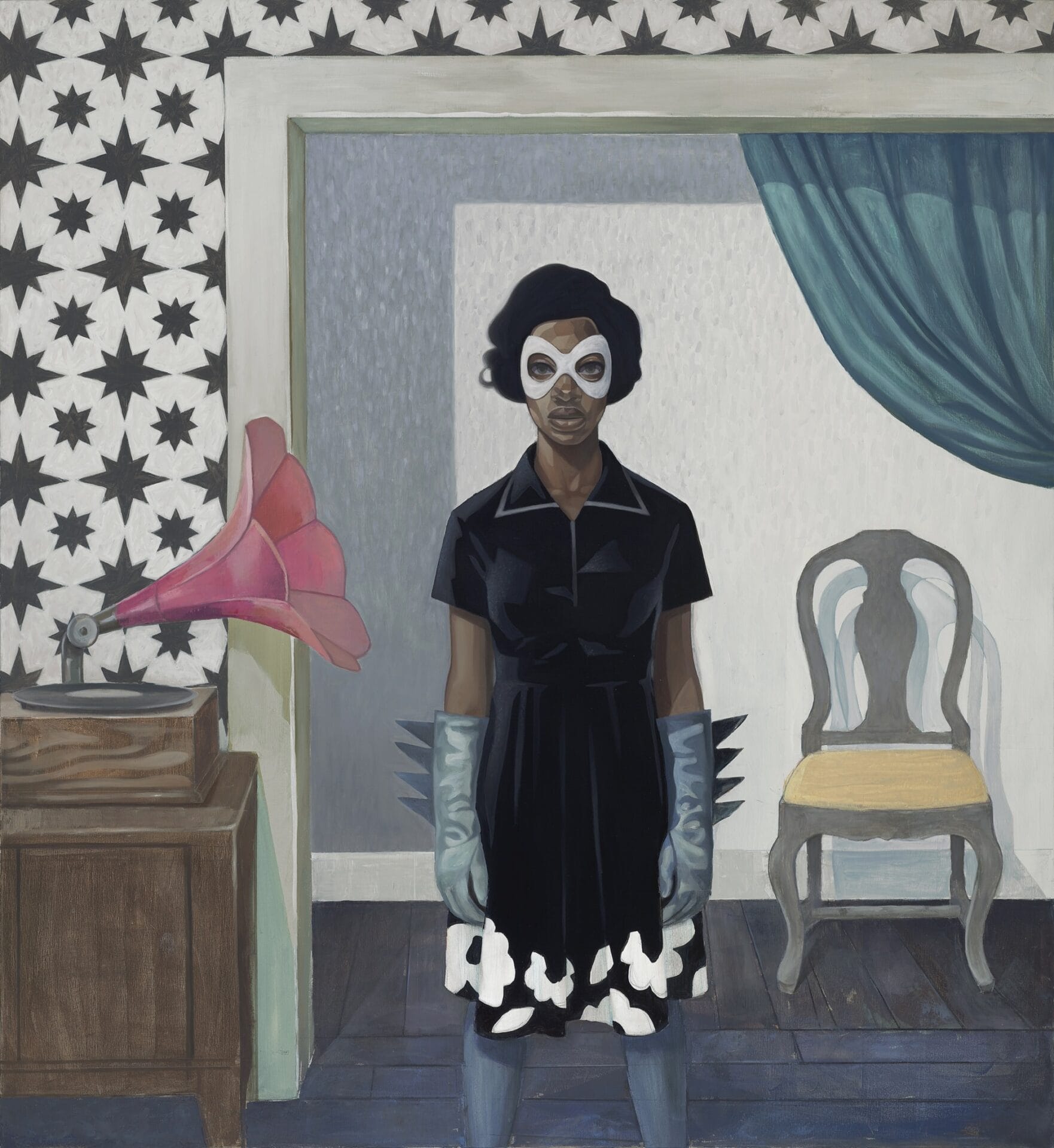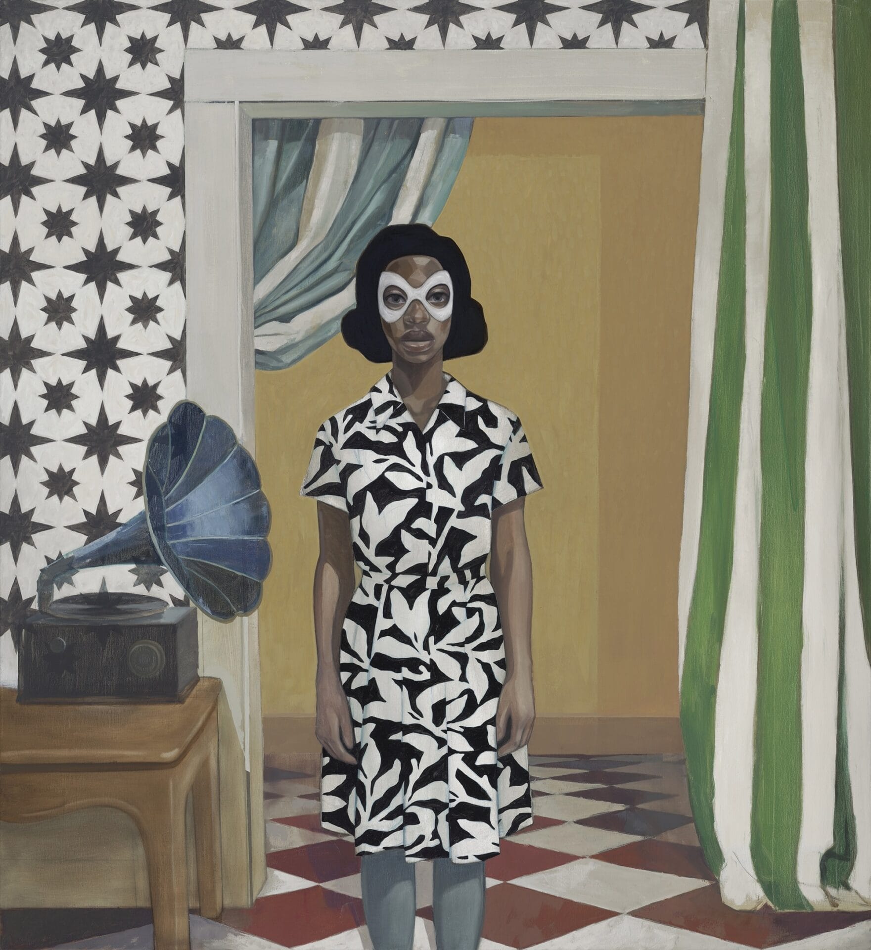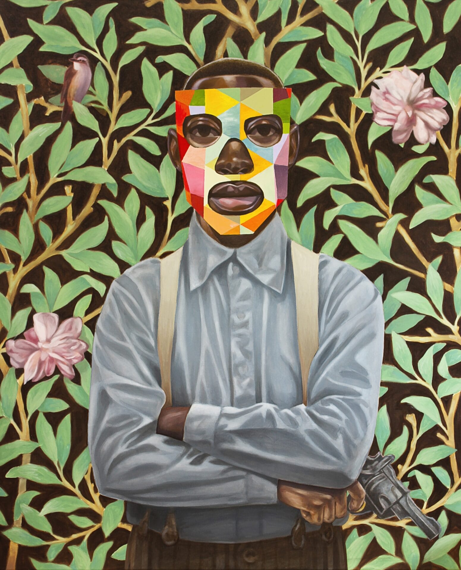 In his bold oil paintings, Jackson illuminates imagination itself. He began to incorporate masks as a way to enrich his own exploration of portraiture while simultaneously kindling a sense of curiosity about the individuals and their histories. Rather than portraying someone specific, each piece asks, “Who do you think this is?”