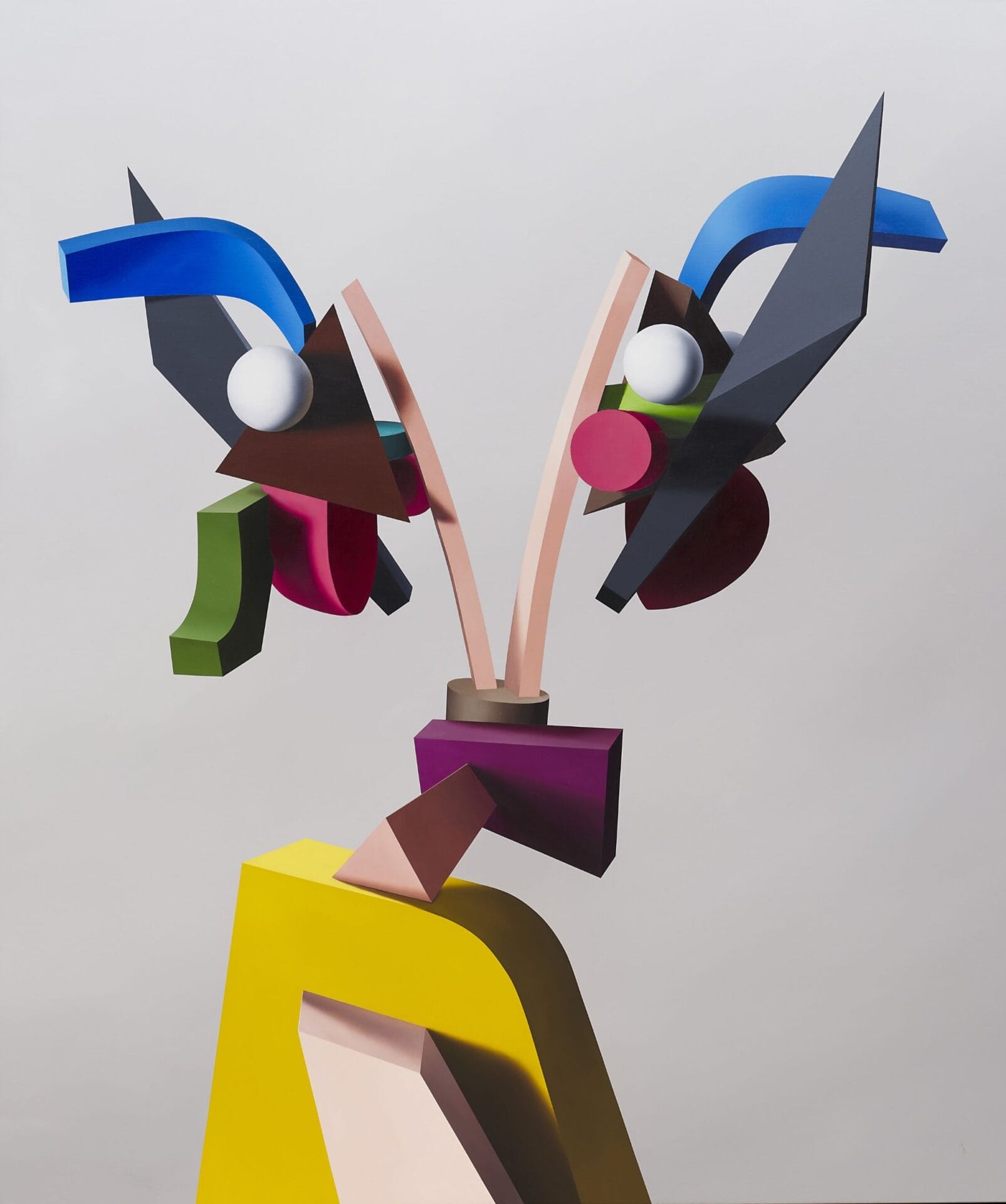 He constructs a persona in the way that many of us build the public-facing identities flooding our social media profiles. His figures are complex but not messy, their feelings compartmentalized in perfectly round spheres and angled forms. Based on the 16 possible outcomes of the Myers-Briggs Type Indicators, the subjects fit into neat constructions that resemble something familiar but are uniquely puzzled together, each shape nested into an individual spot.