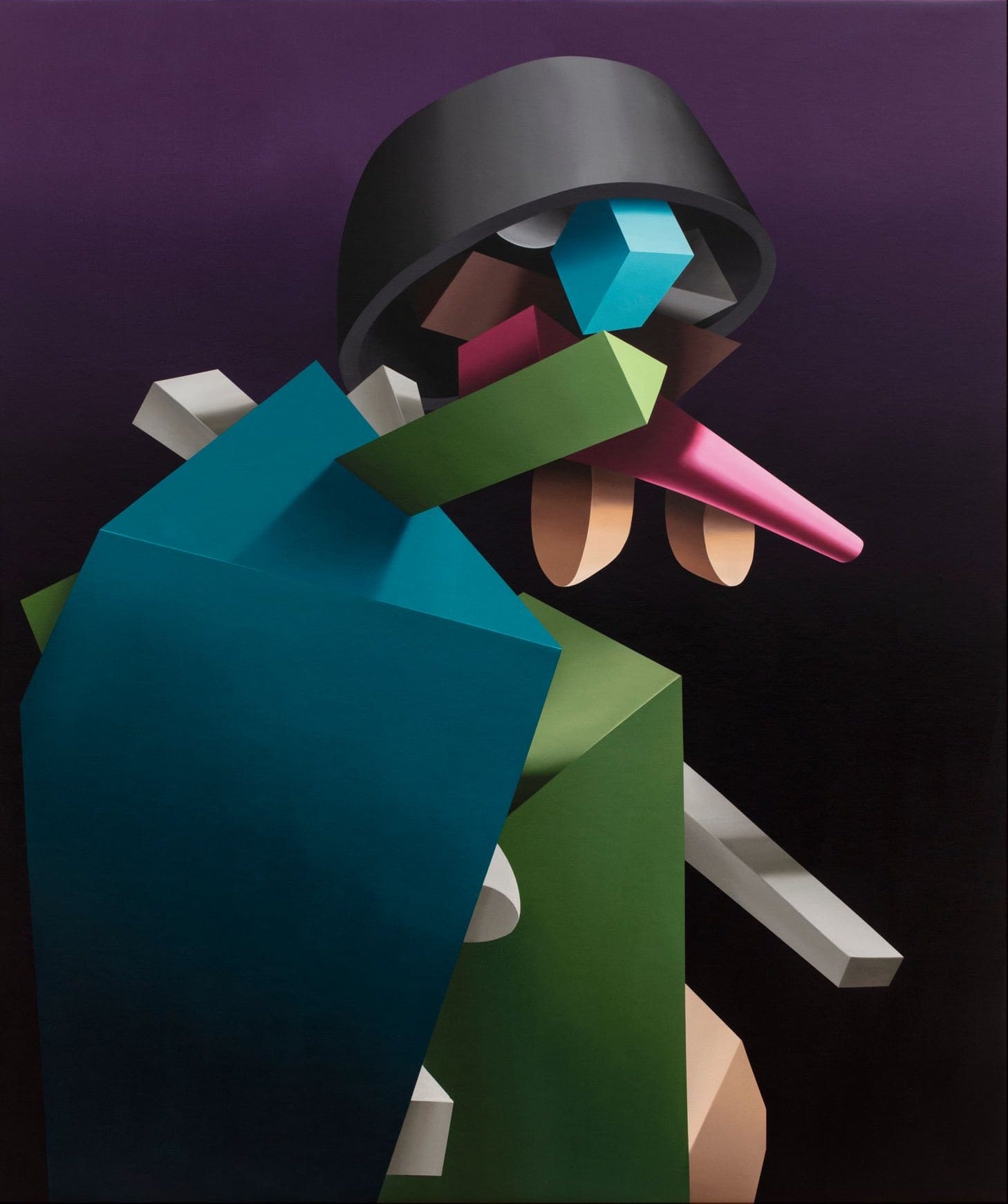 Like realistic portraits, these abstract personalities aren’t static. Experiences offer new perspectives, and over time, our understandings of ourselves and the world shift. Kinsella’s “Mille” portraits draw on the inevitability of change and portray a figure at varying points in life. The first in the series features a disjointed face that plays outward, while the second is tightly constructed, the same shapes rearranged into a recognizable but new configuration.