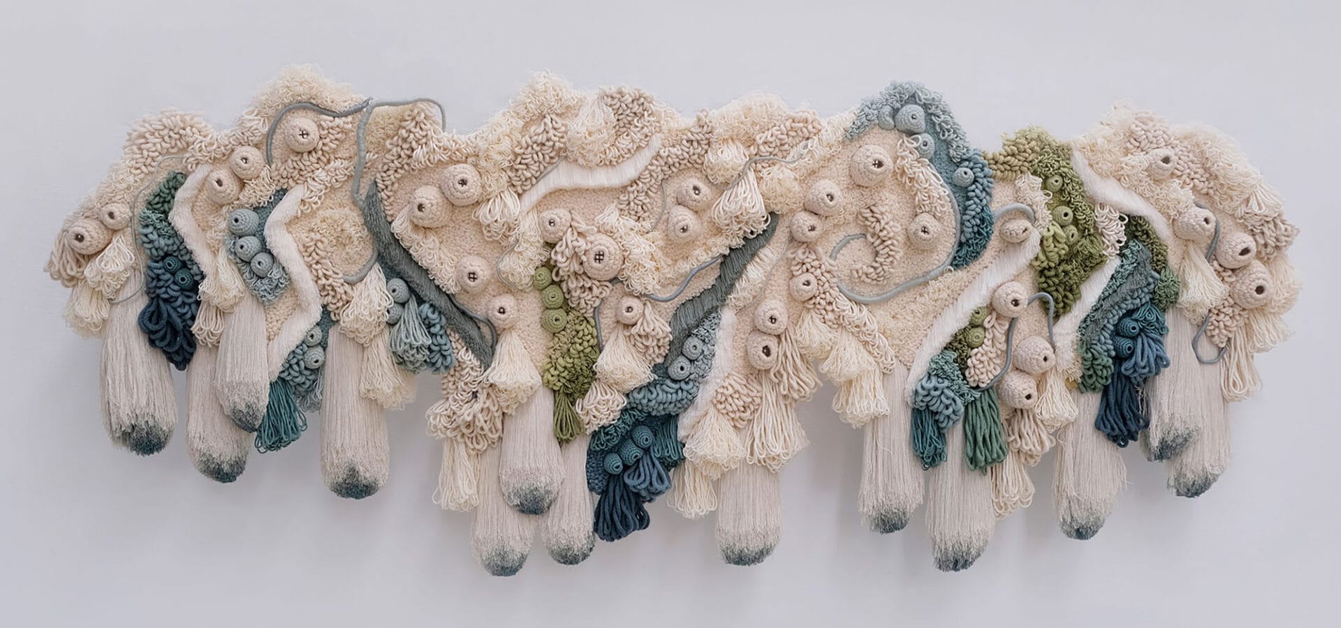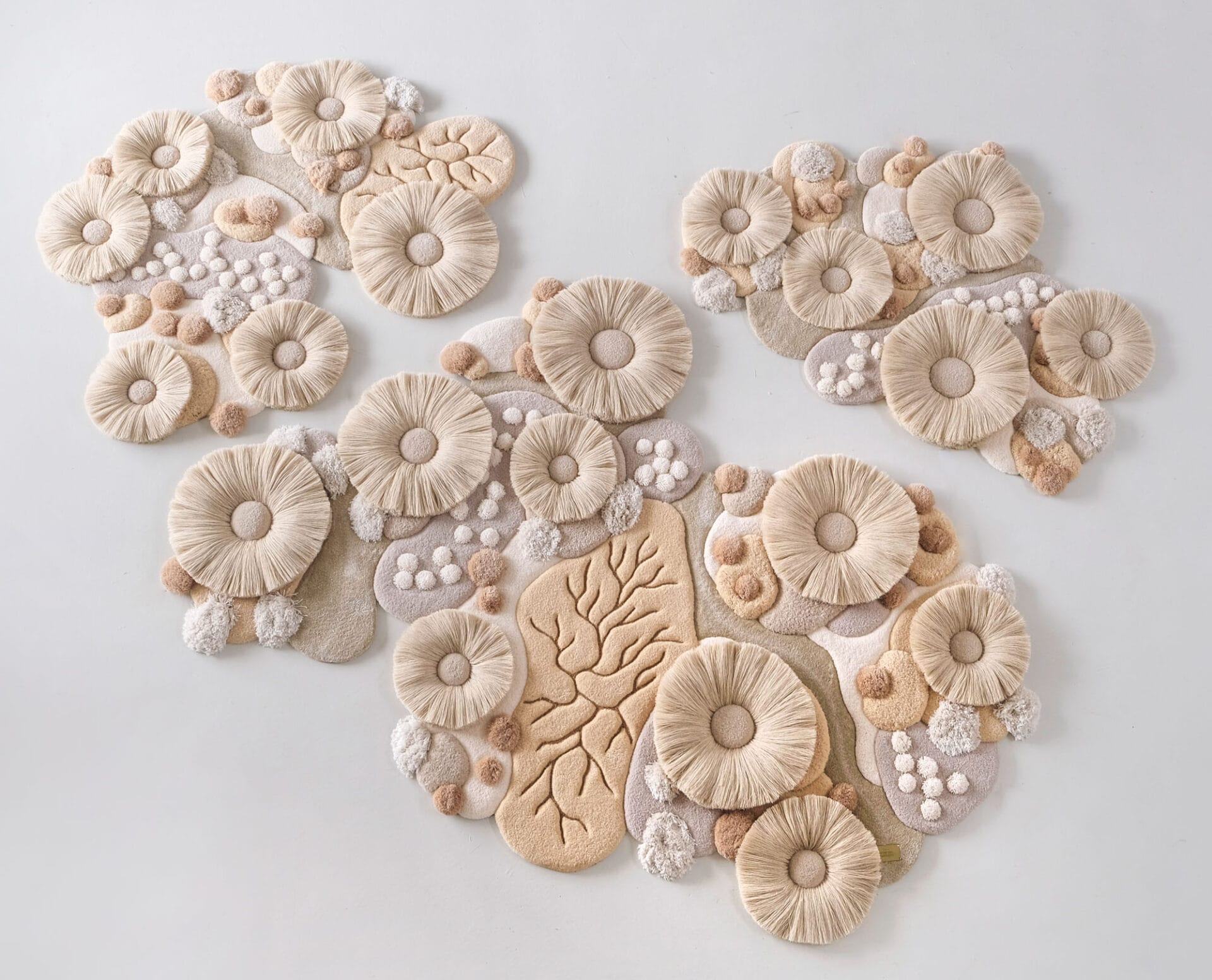 Exploring the fragile forms of ocean ecosystems, Vanessa Barragão continues to create fibrous iterations of coral reefs and marine biomes. Working with a team of studio assistants, she is inspired by environmental stewardship and textile techniques such as latch hooking, crochet, and weaving. Over the course of several weeks to several months, these meditative processes give life to tactile and textural forms.