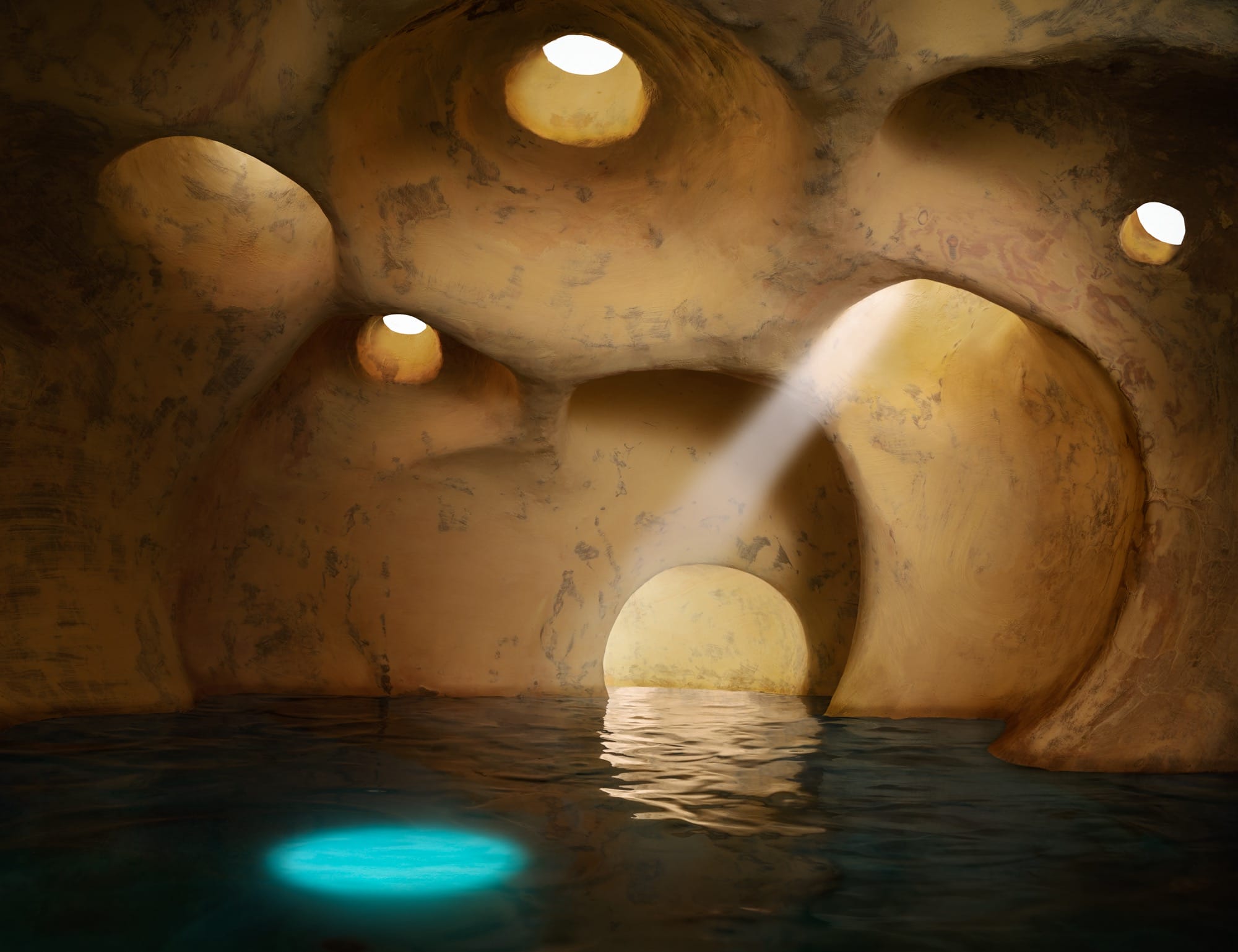 Several works reference Doshi, including “Cavern with Skylights H,” which reinterprets an underground art gallery. Others like “Patio with Blue Sky” look to biomorphic designs by innovators like Burkinabé-German architect Francis Kéré, whose works prioritize sustainability and collaboration.