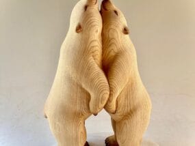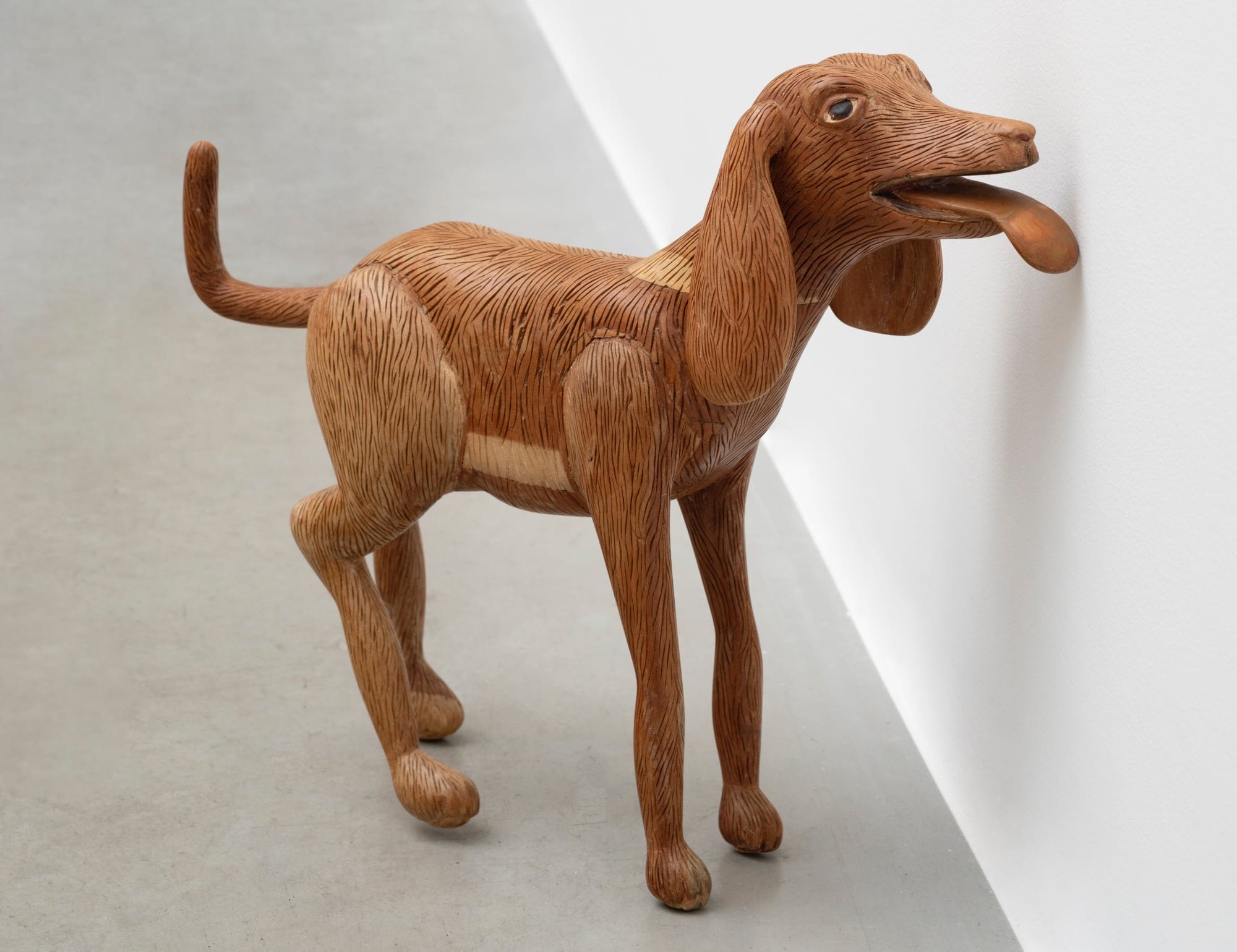 Employing various mediums and materials, the artist first began working in wood while in his father’s studio. “I drew and made the silhouette, and he cut it on a bandsaw. Then I made the sculpture itself,” the artist says. The two had a difficult relationship, and Almeida found that this shared process was a fruitful point of connection. He adds: