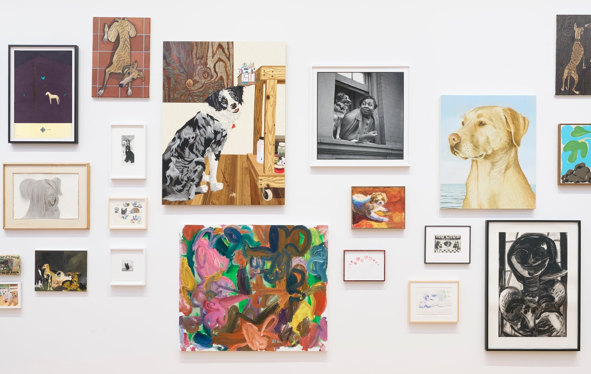 “Dogs have been a feature of visual culture since at least 8,000 years ago when hunter-gatherers carved an image of leashed dogs into a sandstone cliff,” a statement from the gallery says. Symbols of protection, loyalty, and unparalleled love and devotion, canine companions continue to fetch inspiration for artists millennia later.