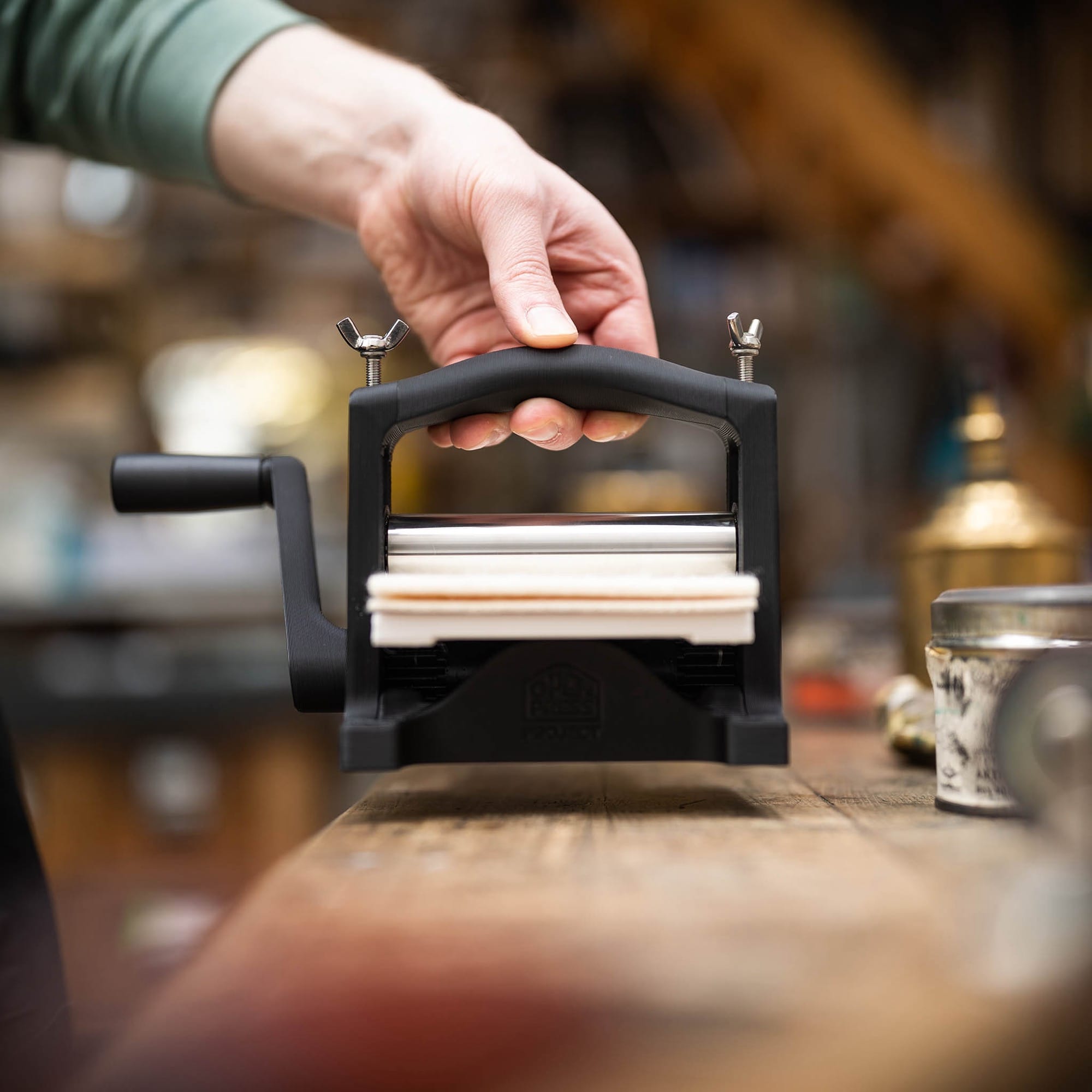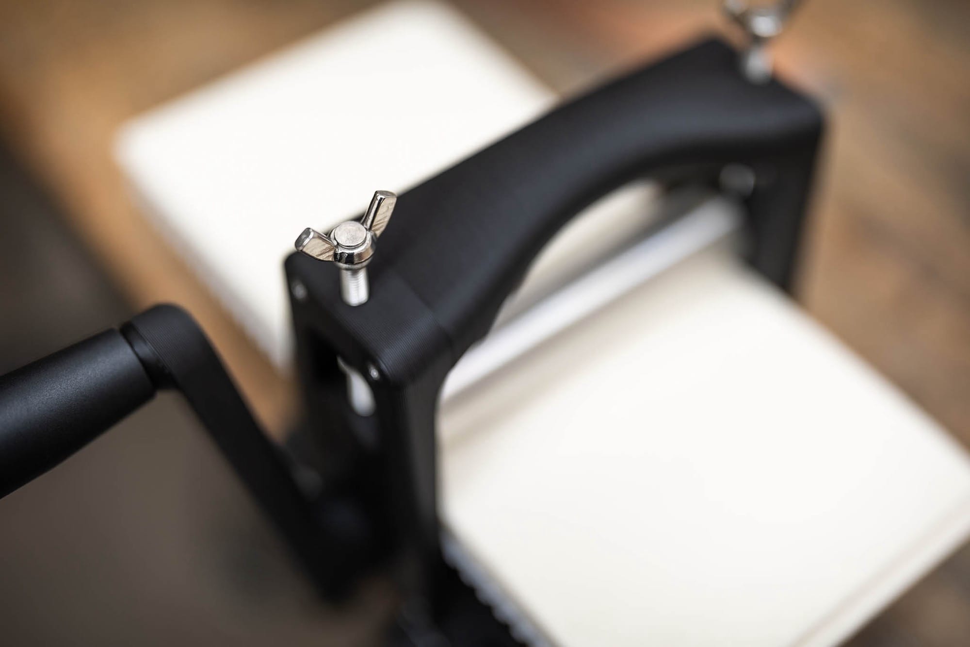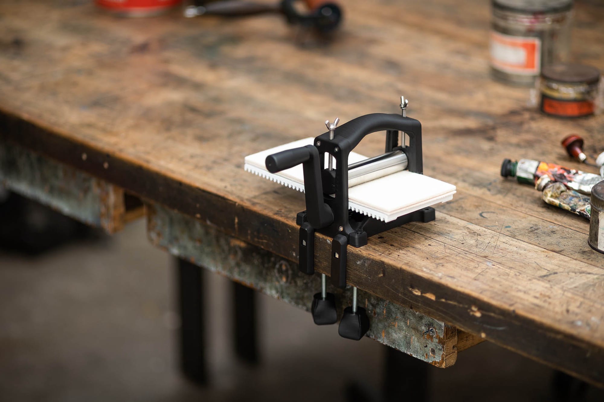 As its name suggests, the 3D-printed, tabletop device is designed for paper about 4 x 9 inches wide and is capable of all types of intaglio printing, from etching and engraving to linocuts and woodcuts. Schneider and Schmitz also upgraded the metal components from previous iterations to make at-home printmaking a little easier.