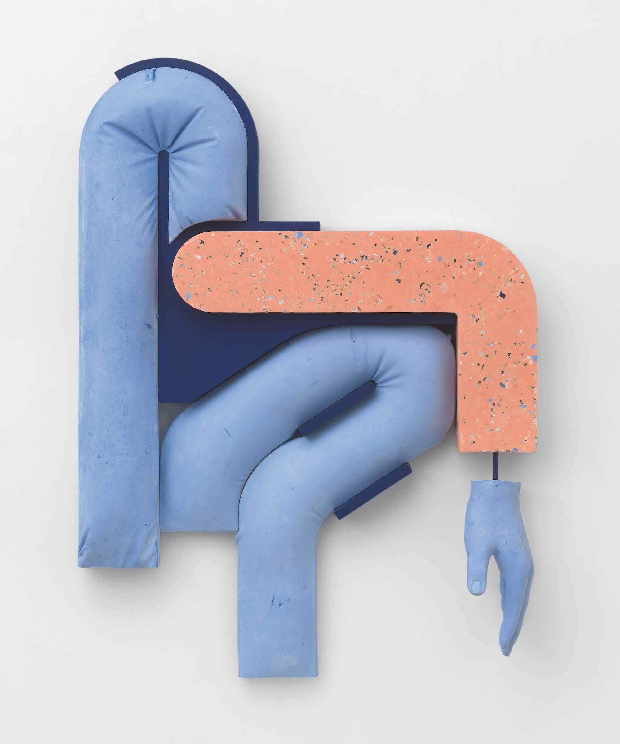 Holly Hendry, “Body Language” (2022), jesmonite, pigment, rock, steel, and paint, 40 3/4 × 30 1/4 × 6 7/8 inches. Photo by Todd-White Art Photography, courtesy of Stephen Friedman Gallery