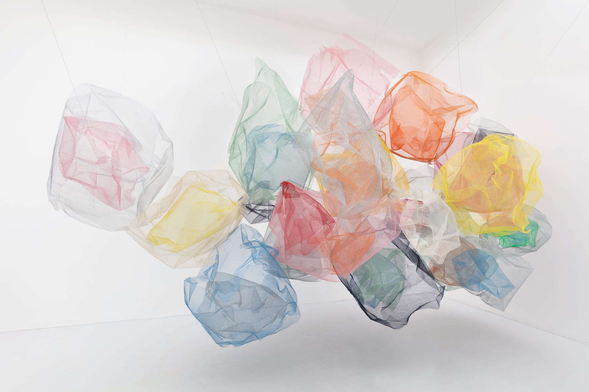 Rana Begum, “No. 1048 Mesh” (2020, powder-coated galvanized mesh, 153 1/2 × 232 1/4 × 110 1/4 inches, courtesy of Begum Studio and Kate MacGarry Gallery