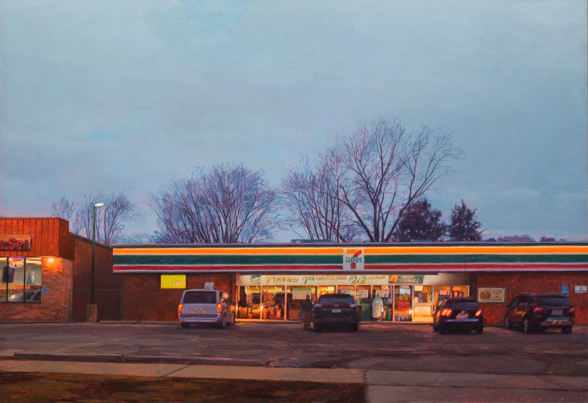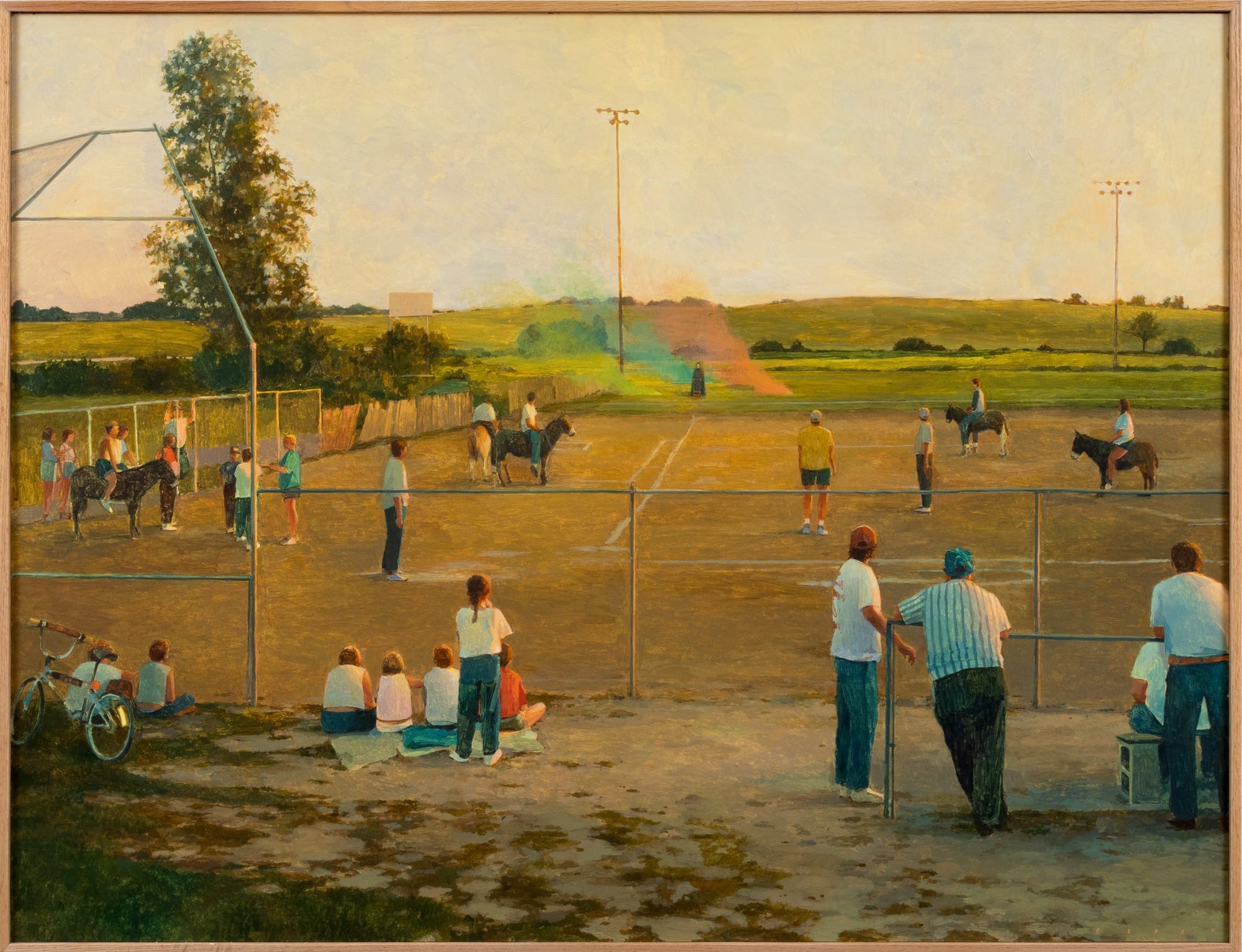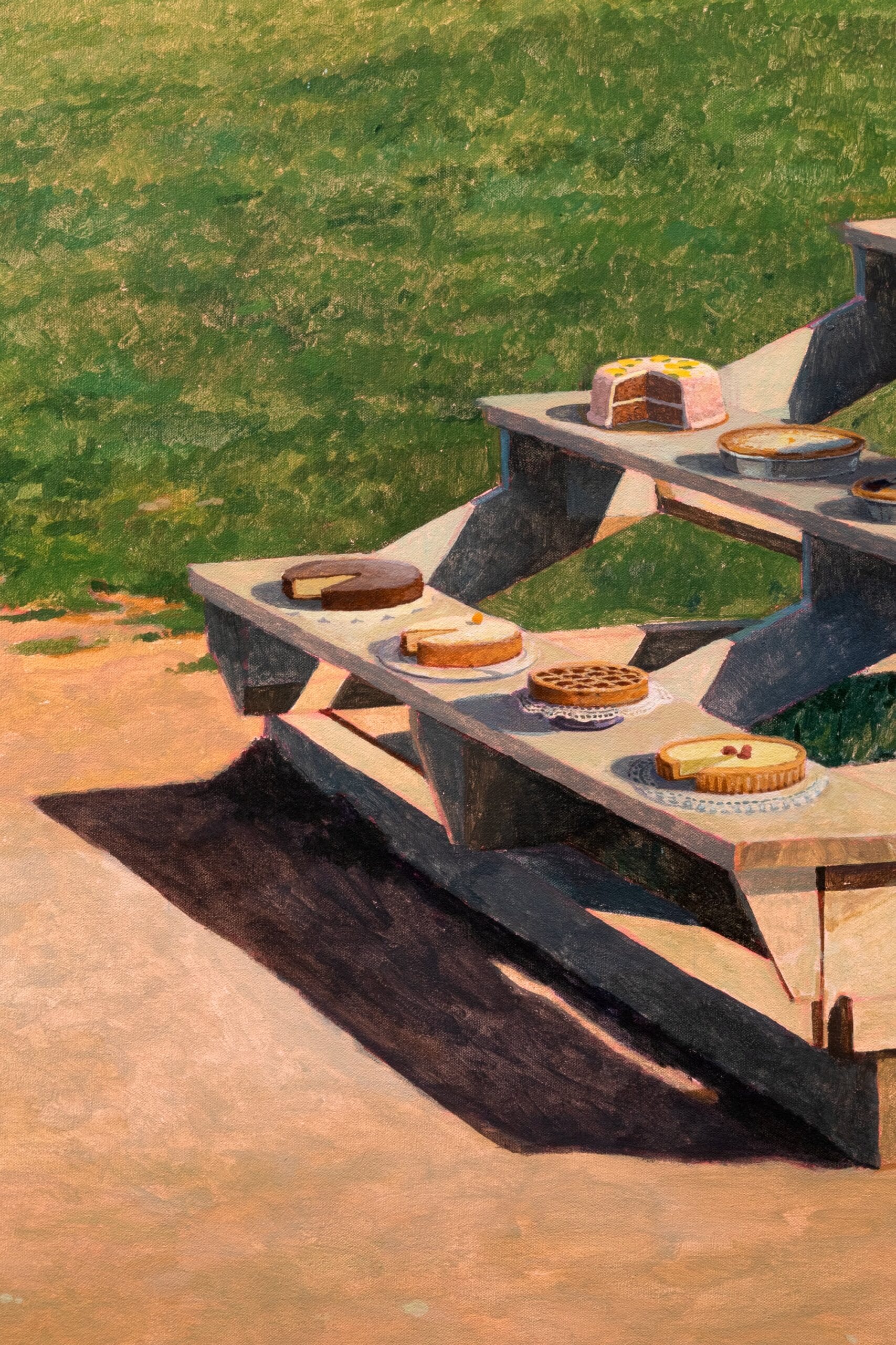 On view through October 13 at the Fort Wayne Museum of Art, Especially Terrific zeroes in on “America from backstage,” glimpsing small-town life and family gatherings. Two women pose on wooden bleachers with an array of cakes and pies in “Call on Me,” while “Memorial Van” displays four photos on the dashboard of a weathered vehicle. Baked with nostalgia, the paintings evoke candid photos and capture a moment in time, one that has inevitably passed.