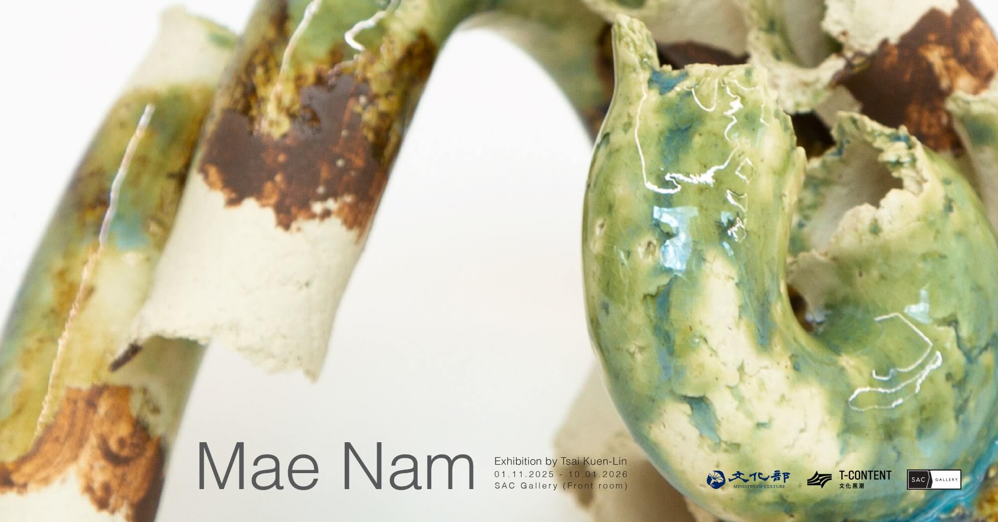 泰國曼谷重要當代藝術空間 SAC 藝廊(SAC Gallery)推出台灣藝術家蔡坤霖全新個展《湄南》(Mae Nam),「Mae Nam」在泰語中意為「母親之河」(Mother Water),象徵孕育萬物的自然力量,也因此他以水下錄音與聲音採集為出發,觀察河流與水利設施如何形塑人類生活,並以聲音作為記憶與感知的媒介。蔡坤霖的創作以聲音、自然與形體交織聞名,此展為藝術家多年駐地創作的結晶,延伸自 2023 年發展的《聲譜》(Resonance Relics)系列,融合他在泰國駐留期間的田野觀察與聲響研究,將「水」作為自然、記憶與文化的載體,透過陶藝、繪畫與版畫等形式轉譯為可感受的物質語言。