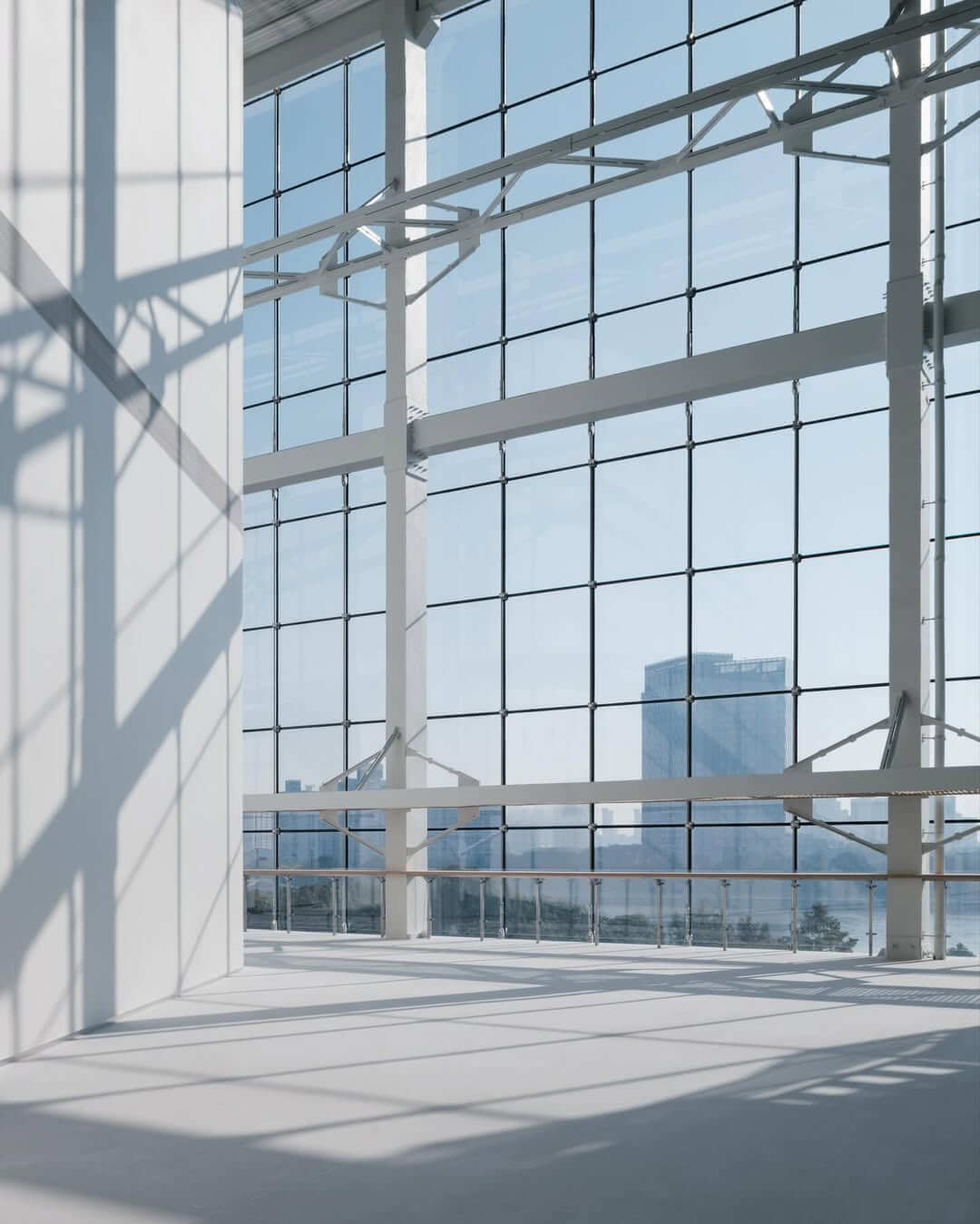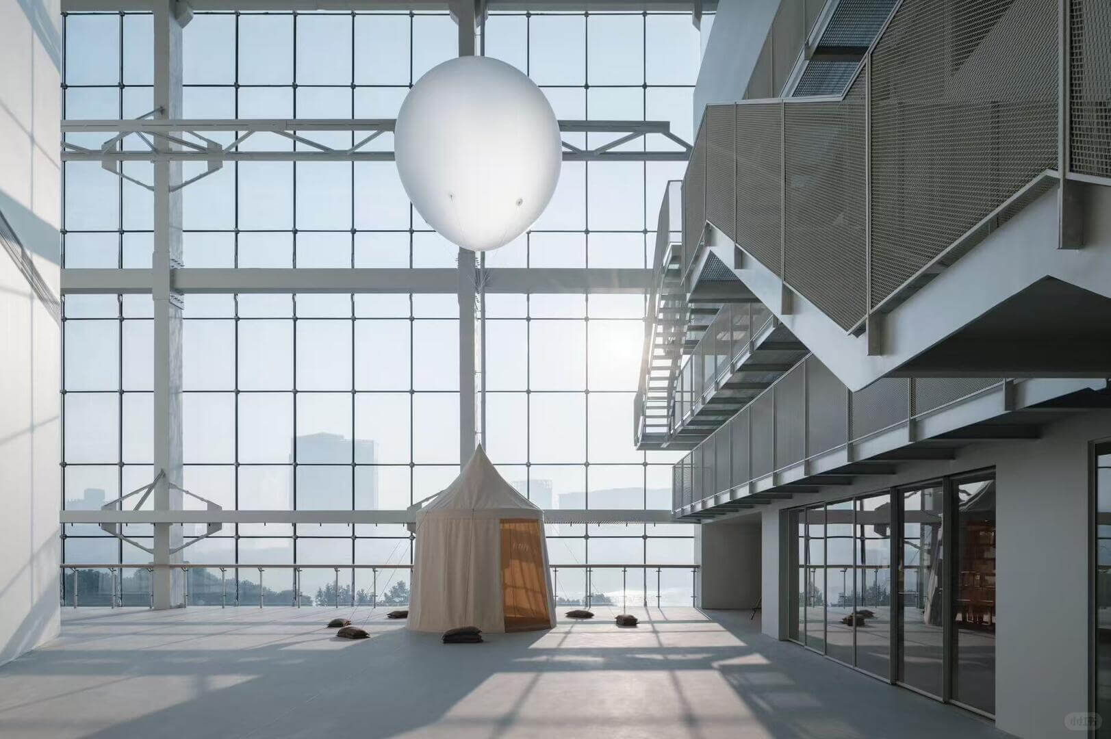 三樓的 300 平方公尺平臺擁有 180 度黃浦江視野,是上海當代藝術博物館追加公共性的象徵性空間。本次改造新增咖啡服務與親子休憩區域,讓觀眾在觀展之外,也能在城市風景中獲得片刻停留,使藝術融入日常體驗。