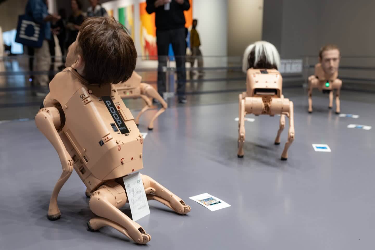 這件作品的關鍵不是只有令人驚豔的形體,而是機械技術帶出關於「感知能力」的討論。這些機器狗並不是擺著不動的雕塑,它們持續觀測周圍的一切,把空間即時轉成 3D 地圖,就像在腦中快速描繪環境。12 個馬達就像 12 條肌肉,讓它們能走、能轉、能重新站穩,動作自然得像真的動物一樣。因此,觀眾不僅在看一件作品,而是「跟一個會感知的存在共處」。