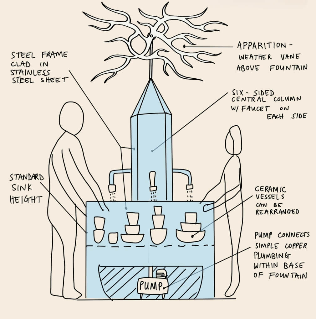 ■ 科斯馬斯&達米安·布朗(Cosmas & Damian Brown)將呈獻其首件大型公共藝術裝置《Fountain: The Light》( 2026)。作品由 6 個陶瓷環繞中央噴泉組成,每個都將升起裊裊香煙,流水則匯集於裝滿金屬容器的水池中。參觀者可親手重新排列容器,微妙地改變流水的聲響與節奏。作為藝術製作基金會「藝術聖代(Art Sundae)」計畫的一環,布朗將主持青少年工作坊,實踐藝術家與兒童共創的精神。受其展出作品啟發,孩子們將在金屬盤碗上繪畫,這些成果將融入噴泉裝置中並持續展出。參與者不僅能親身體驗創作,更能見證個人作品成為大型公共藝術不可或缺的一部分。