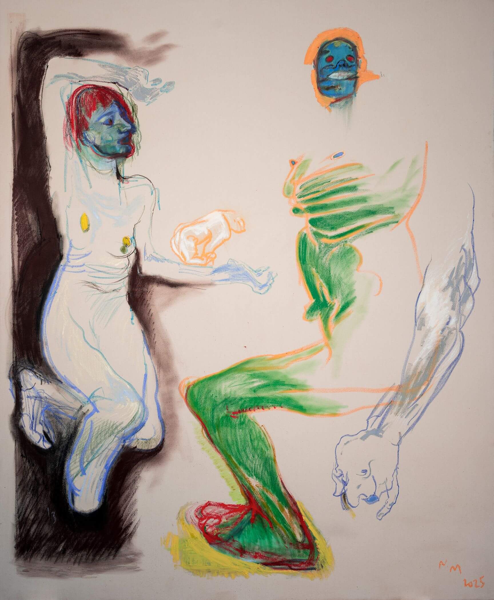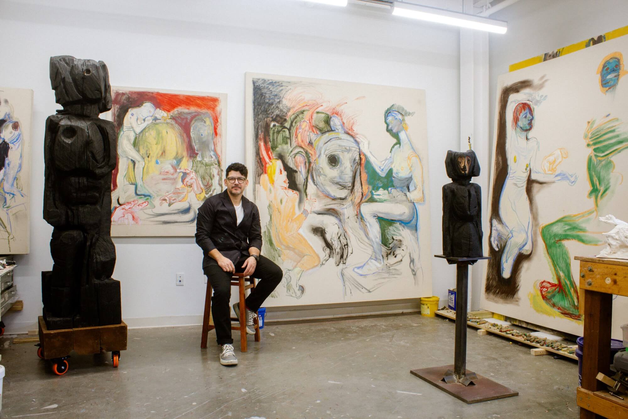 納波萊斯·馬蒂(Napoles Marty) 是一位雕塑家與畫家,他的作品以人體為載體承載意義,融合了古典與現代主義形式,塑造出原始而怪誕的形象。透過雕刻、炭化和繪畫,馬蒂創造出半人半獸的形象——「精神守護者」(Spiritual Guardians),藉此探索力量、脆弱、轉變與神話,同時反映其個人夢境與古巴傳統。