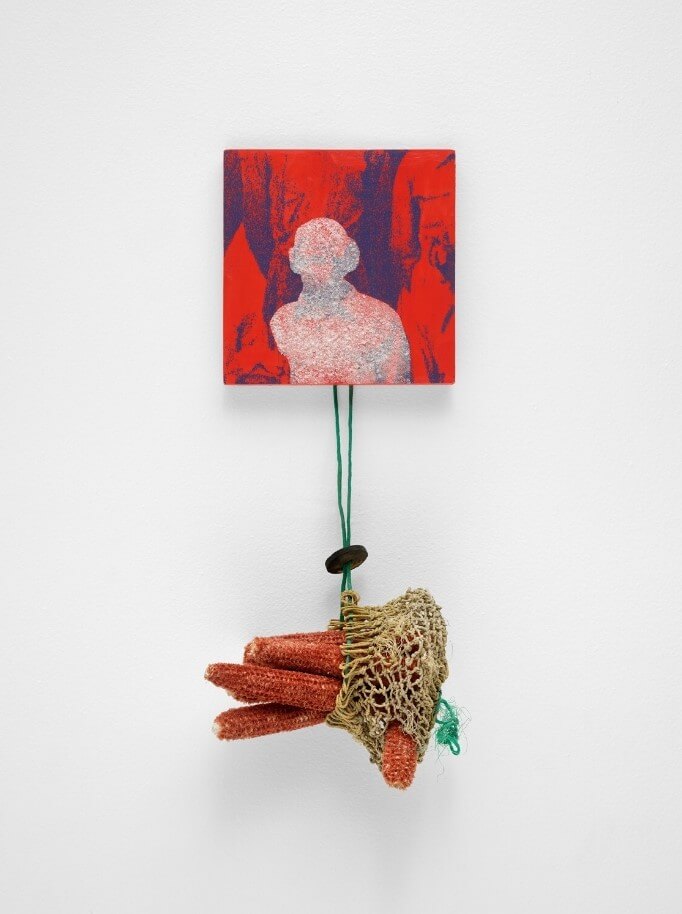 Turiya Adkins, The Ballad of Canga Brown, 2023, Acrylic, salt and corn cobbs, 55.9 × 20.3 cm. Courtesy of Artist and Hannah Traore Gallery.