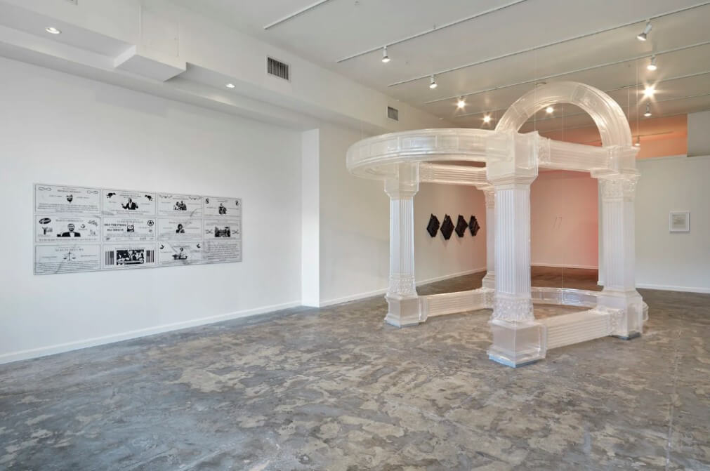 Jamal Cyrus(賈馬爾·賽勒斯)的創作實踐以嚴謹的研究為驅動力,巧妙運用拼貼(Collage)與組裝(Assemblage)的手法,深入挖掘非裔美國人身份認同在黑人政治運動及非裔散居(African Diaspora)脈絡下的演變史。同時探索蘊藏於聲音、圖像和材料(包括牛仔布、混凝土、黑膠唱片和樂器)之中的歷史層次。本次在 Frieze LA ,Patron 畫廊將與賽勒斯合作呈獻他的雕塑和裝置作品,首次展出了他最新的牛仔布紡織品和改造樂器系列作品:這些作品與身份認同和帝國權力的歷史積累產生共鳴。