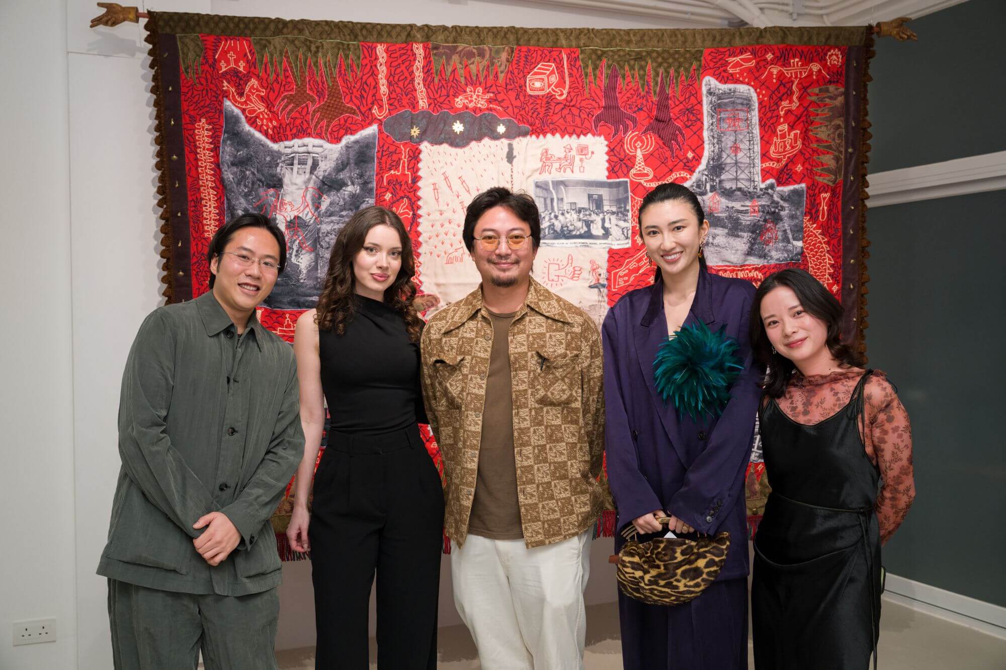 left to right: Brian Yue, Maria Chitu, Cian Dayrit, Claire Bi and Tiffany Leung at opening of ‘Cian Dayrit: A Country, A Body’. Courtesy of Cheng-Lan Foundation.