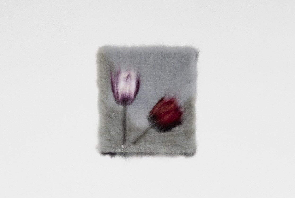 Maria Szakats, Both sides now, 2026, Mohair on canvas, 24.1 × 22.1 cm. Courtesy of the Artist and Megan Mulrooney.
